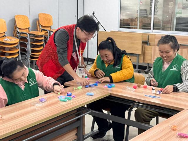 初冬寒意渐浓,11月19日,武汉市中南路阳光家园社区活动室内却暖意涌动。当天,武昌工学院经济与管理学院青年志愿者协会在此开展“彩泥玩转童趣,直播传递温情”主题志愿活动,身着红色马甲的志愿者与社区残障朋友们携手,用彩泥创作传递快乐,借直播分享温暖。