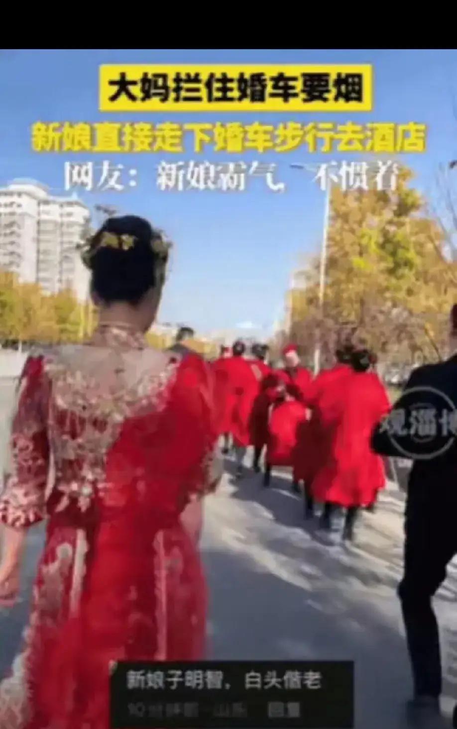 这新娘霸气!江苏一新娘坐婚车去酒店,结果,途中被一群大妈拦住,索要烟,给少了还不