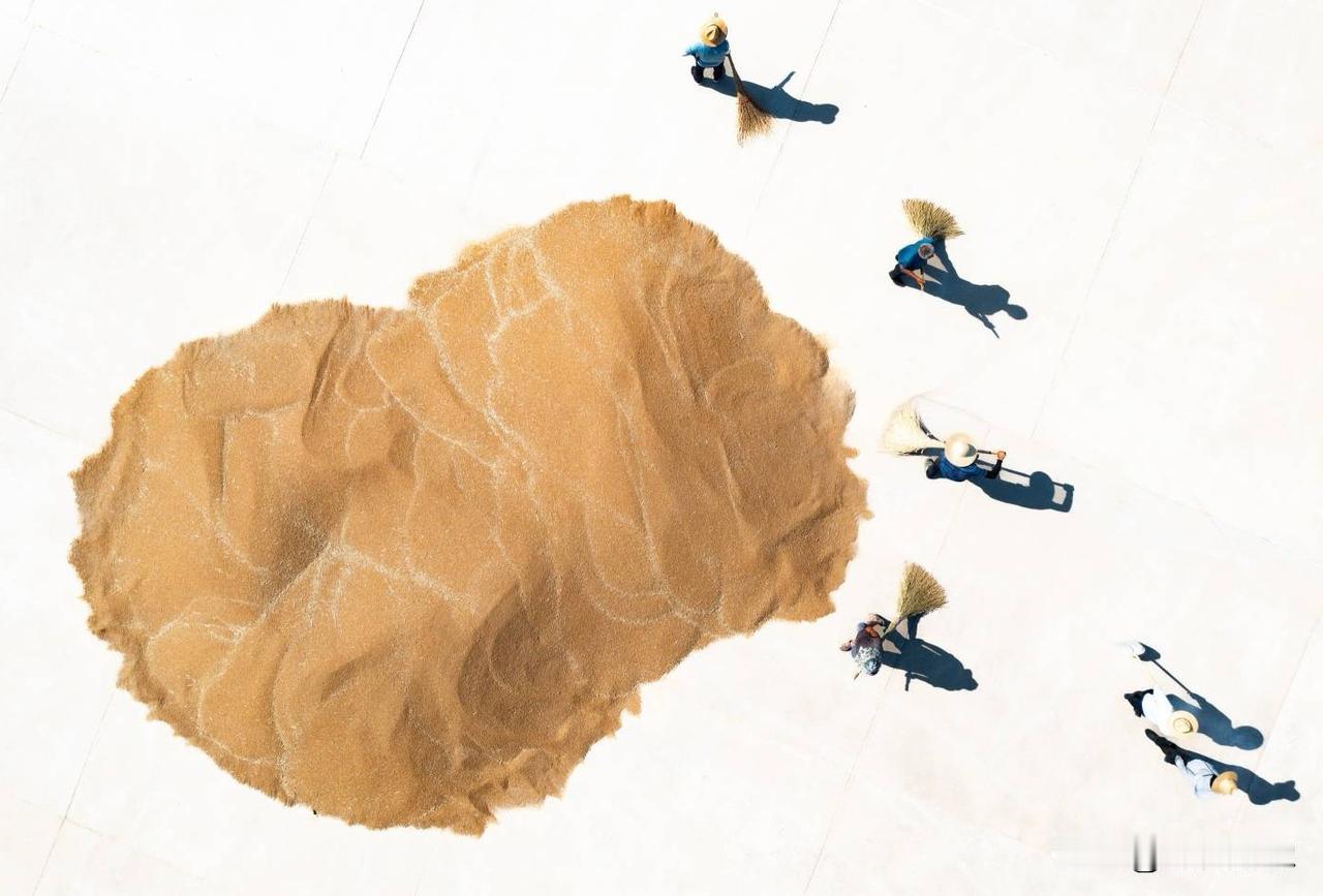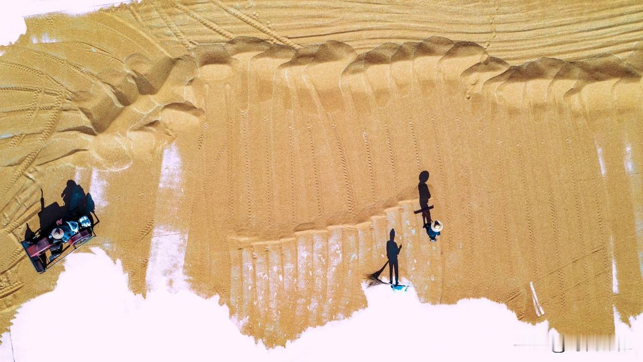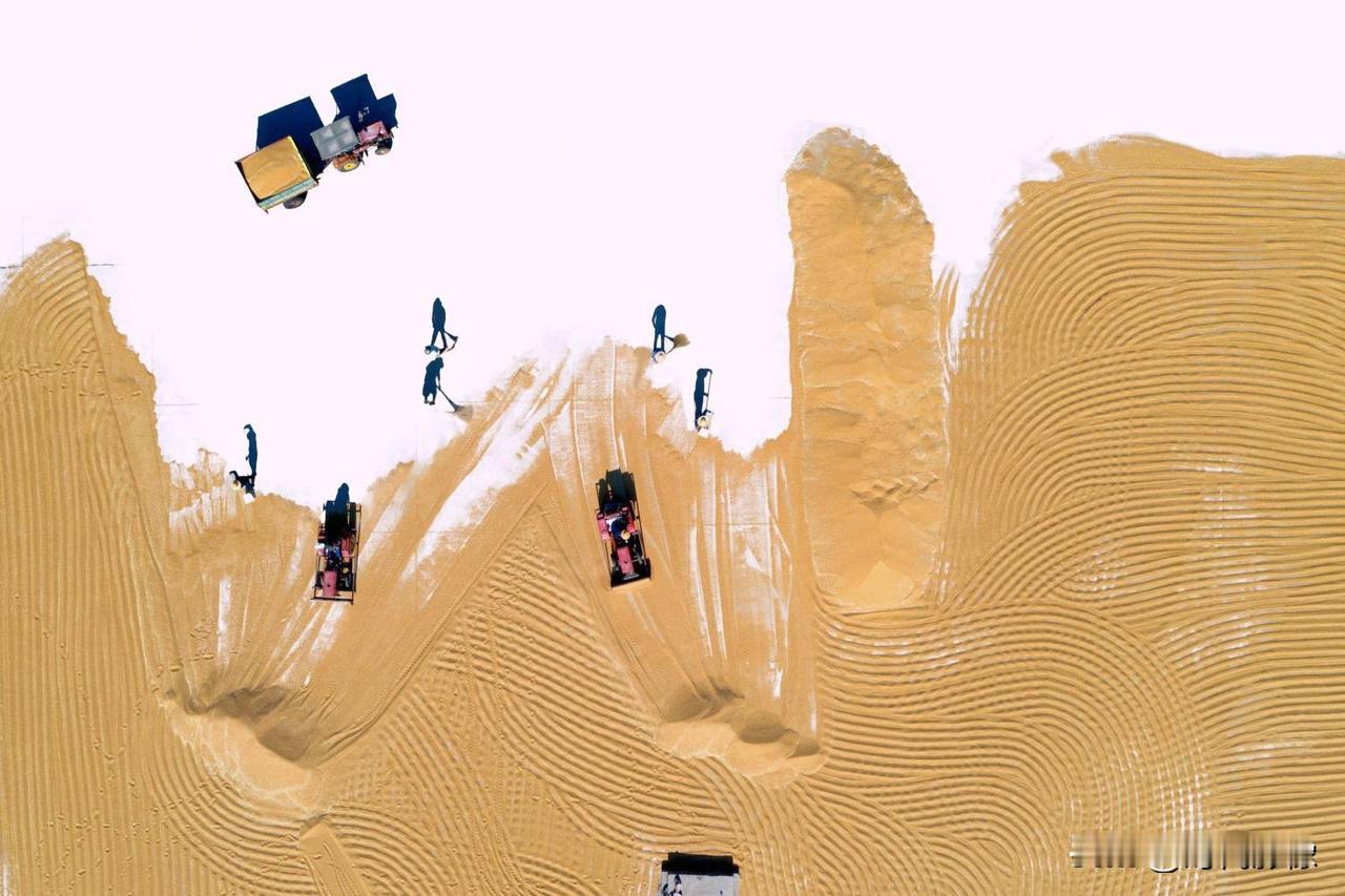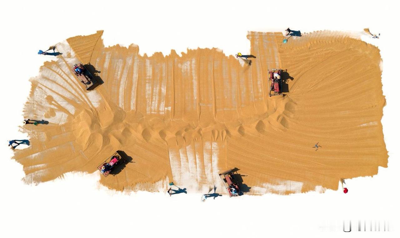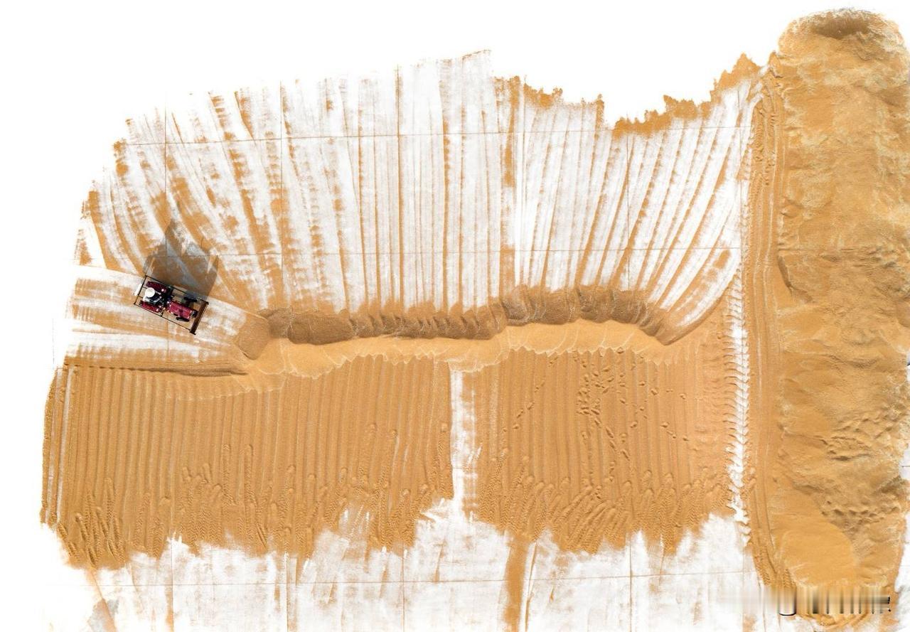 第十六届山东省摄影艺术展艺术类铜质奖《麦场写意》评语: 作品以鸟瞰视角表现山东莱西小麦丰收的壮观场景,将现实的小麦晾晒场转化为一幅幅恢弘的写意画作,画面既具抽象构成的现代感,又饱含浓郁的土地情怀。摄影师在影像后期制作中有意隐去水泥地面,使晾晒场上成堆的金黄色粮食在航拍的视角下被提炼为一个个纯粹而强烈的独具风格化的图案,强化了色彩的整体感与点、线、面的视觉节奏,犹如挥洒自如的大写意笔触,不仅强化了视觉形式美感与艺术张力,更使丰收的气息扑面而来,将丰收的喜悦转化为可触可感的视觉盛宴。(作者:张言哲)
