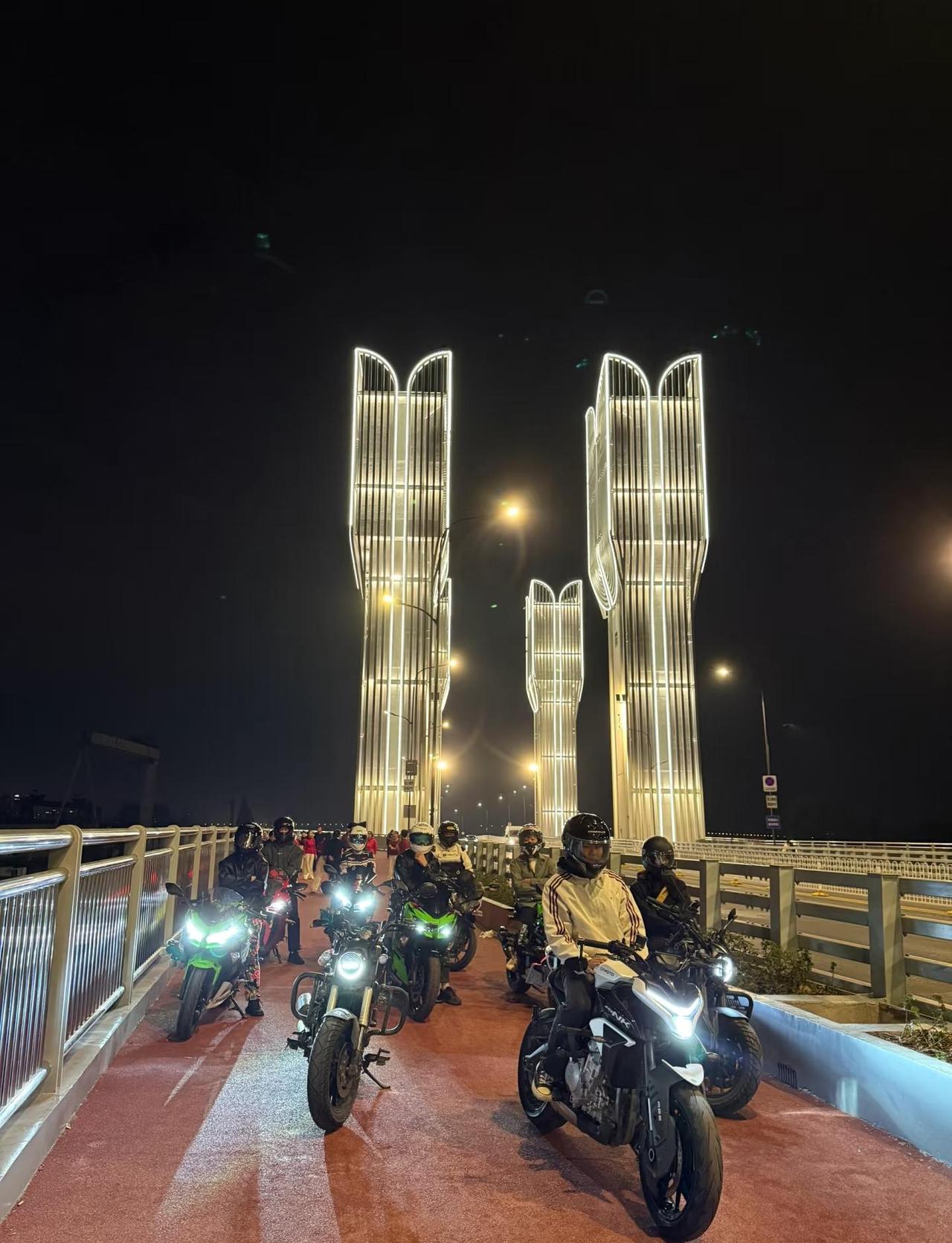 网红迪迦桥 变身! 温馨提醒大家,文明骑行,不要遮挡号牌,不要炸街。 打卡武汉迪迦桥 摩托车