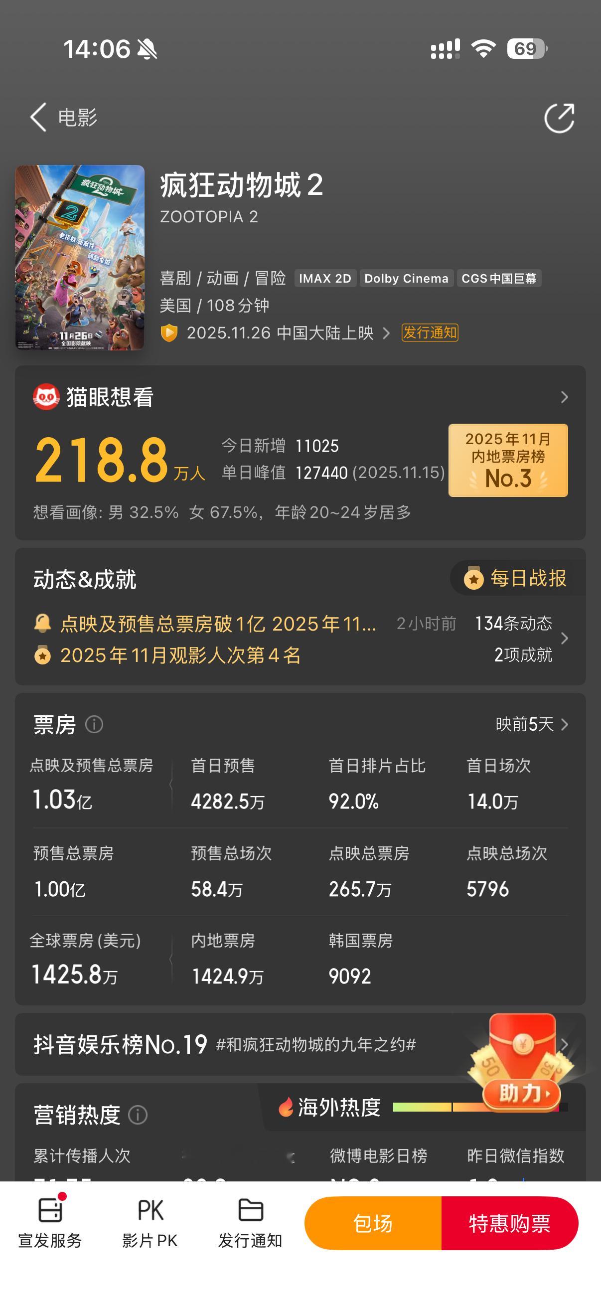 《疯狂动物城2》上映前5天预售破1亿!🐮🍺!
