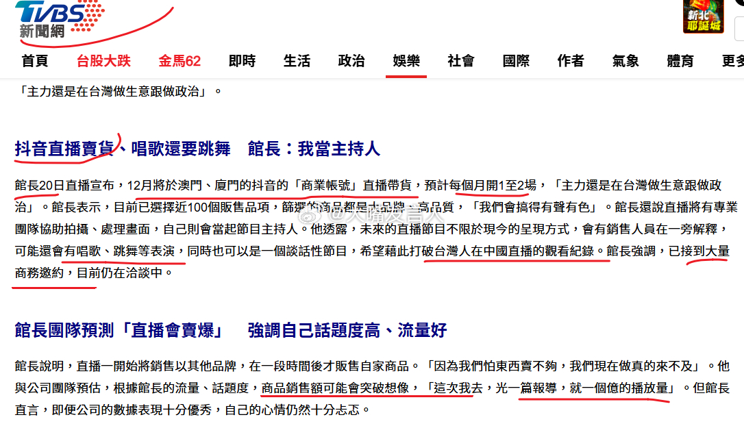 馆长宣布要来dy直播带货新闻来源: tvbs