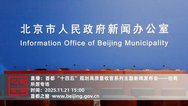 11月21日(星期五)下午3:00,在北京市委市政府新闻发布厅,北京市人民政府新闻办公室将举行首都“十四五”规划高质量收官系列主题新闻发布会——住有所居专场。市住房和城乡建设委主要负责同志将带队介绍情况并回答记者提问。首都之窗将进行直播,敬请关注!