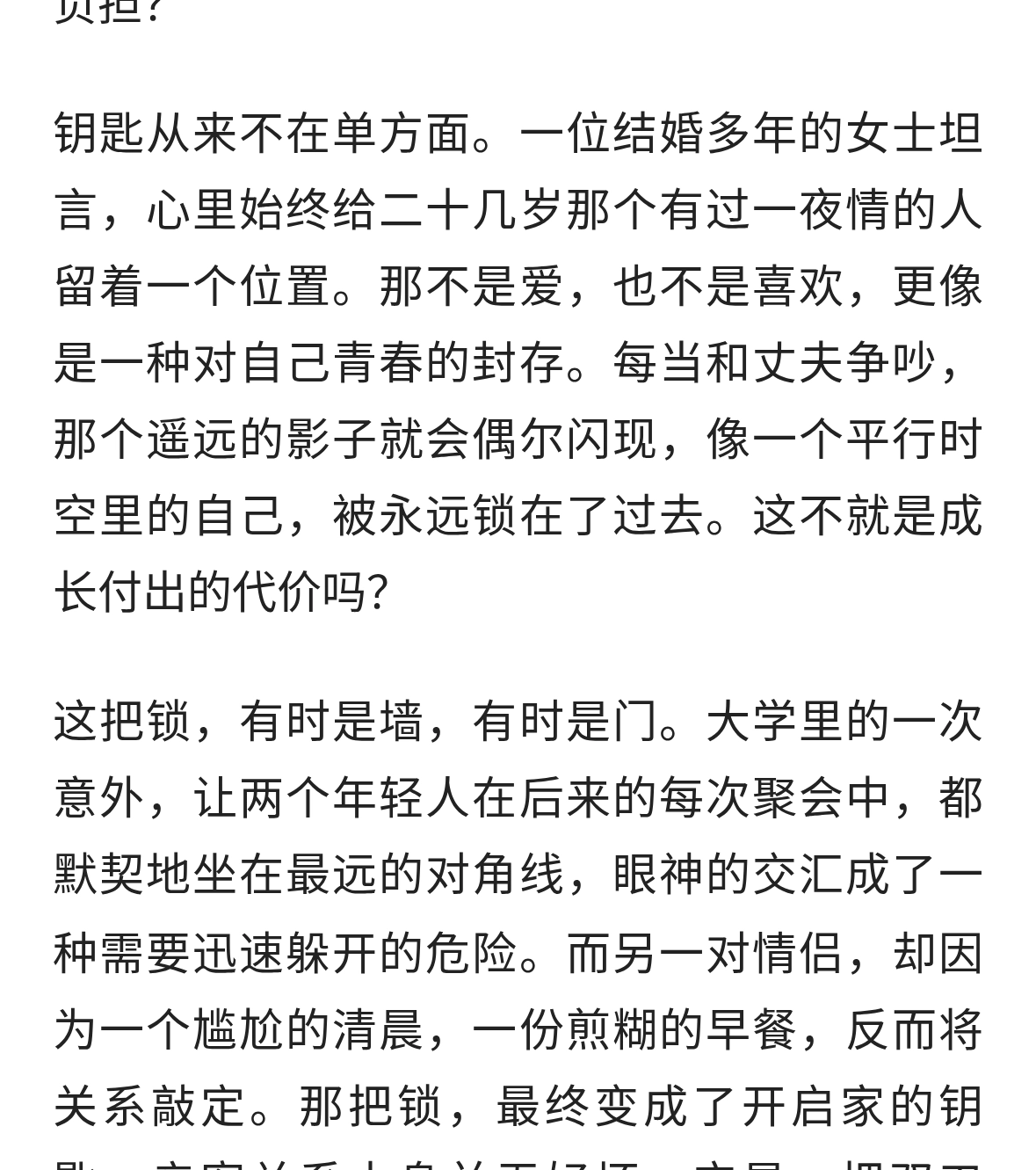 男女之间 身体的亲密关系就像在心上盖了一个戳 一旦盖上 再也擦不掉