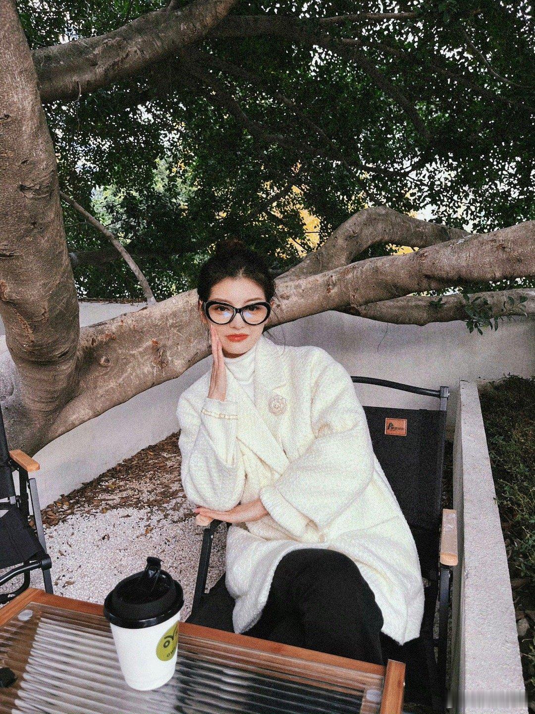 出门是成都人对太阳最大的尊重~谁能懂急速降温后的阳光有多宝贵😭今天去的咖啡店好有特点啊是围绕着一棵树建造的🌳既能坐下喝杯咖啡☕️拍拍照📷还有一定的观赏性!穿搭我选了简单的黑白色系白色呢子外套⚪️黑色牛仔裤⚫️黑框眼镜➿再点缀一个彩色小耳机舒适又出片~