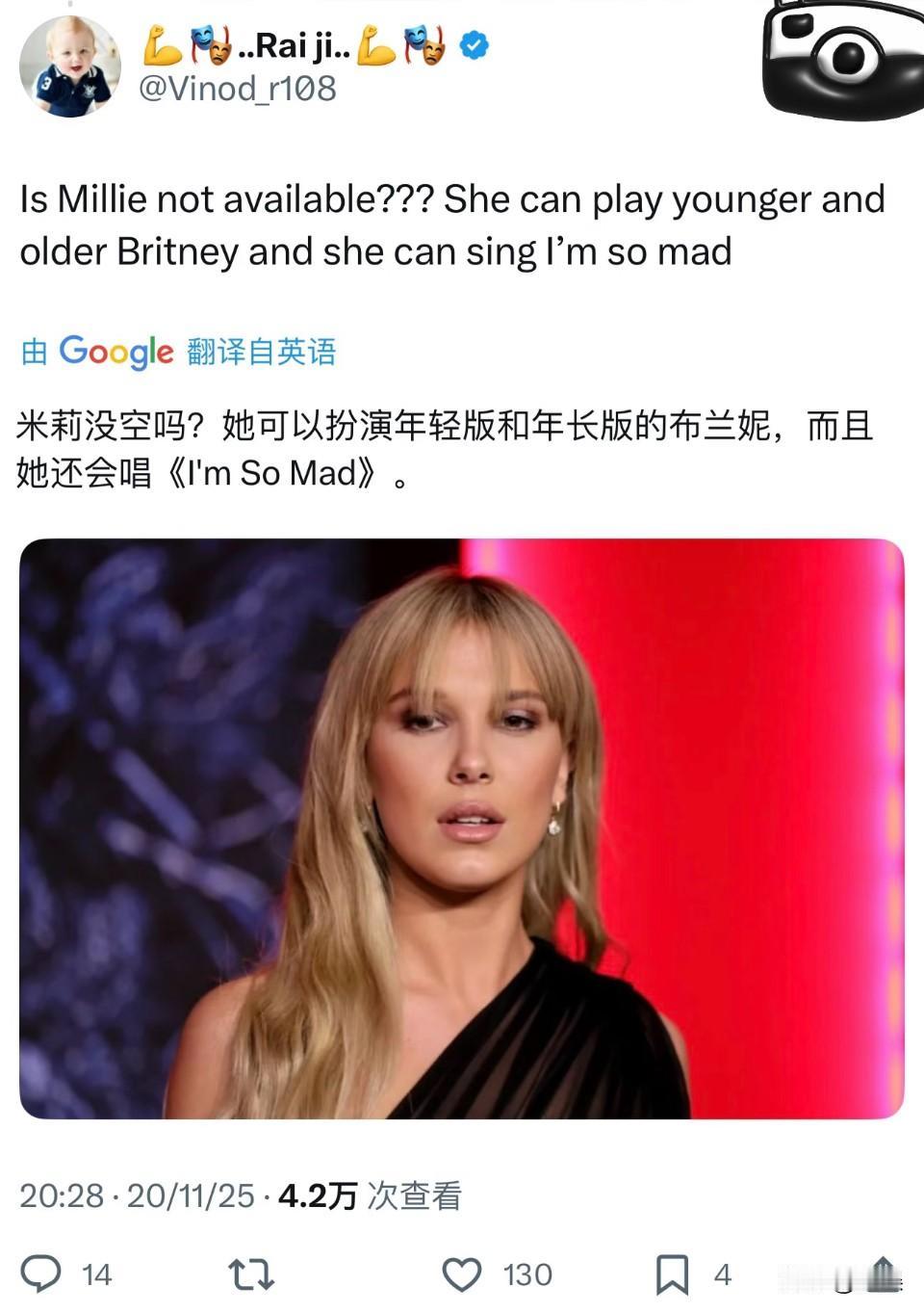 外网网友不希望玛格特罗比出演布兰妮 罗比 演布兰妮的话,感觉被控制事业之前就能把这帮人突突了…[笑哭] 能不能回到海选普通人演传记片而不是从已经成名的演员里挑出半不合适的...很出戏啊....[笑哭] 虽然只是传言...就是说你坞能不能回到90s或者之前,像挑演Selena的女孩一样海选几百个人从里面挑出合适的。。。[笑哭]罗比姐 布兰妮