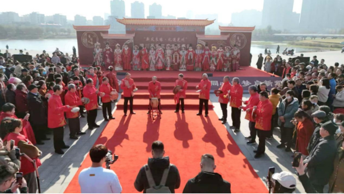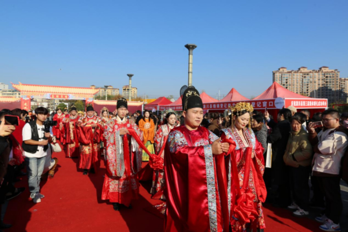 随着典礼圆满落幕,一系列精彩节目轮番上演,锣鼓十八番铿锵激昂、唢呐合奏婉转悠扬,古典舞翩跹灵动、豫剧选段韵味醇厚、歌曲演唱深情动人……瞬间点燃现场热烈氛围。既为新人的幸福时刻增添了别样喜庆与浪漫,更以群众喜闻乐见的文艺形式,将文明婚俗理念融入欢声笑语中,让移风易俗的新风尚在潜移默化中深入人心。