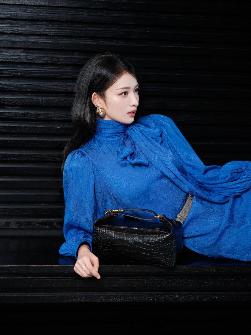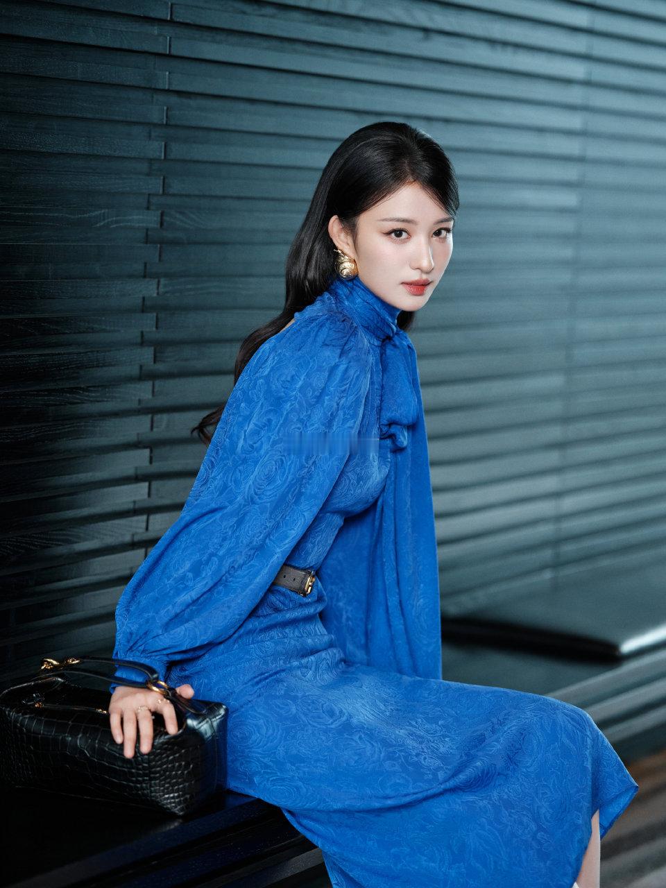 王楚然这组大片美出新高度!丝绒蓝裙与复古卷发的组合,打造出精致又慵懒的摩登女郎形