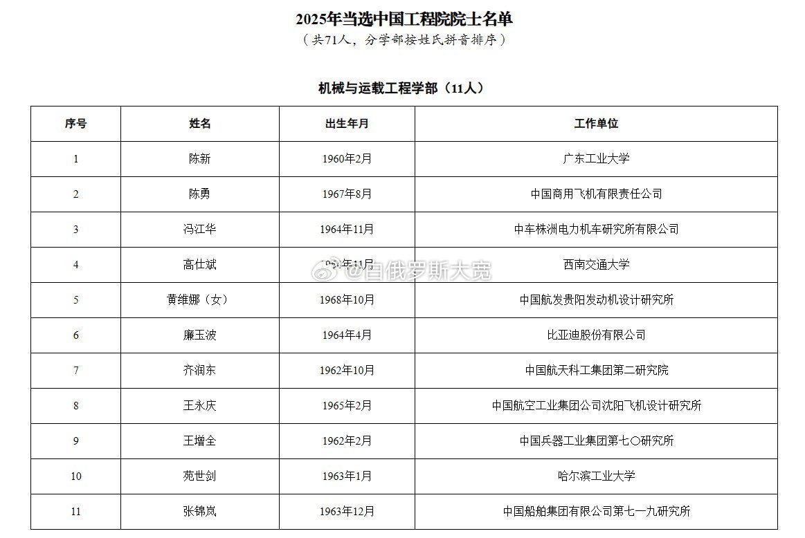 11月21日,2025年两院院士增选结果正式揭晓,共有144人当选。海军工程大学马伟明团队的鲁军勇当选中国科学院院士,研究方向为电磁发射理论与技术。(601所)首席专家、歼-35A总师王永庆,中国航发专职型号总师黄维娜(涡扇-19总师)当选中国工程院院士。