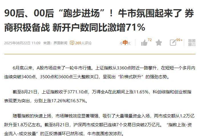 大家有没有察觉?年轻人悄悄换了三条“活法”,信号非常强烈。 第一,卷不动了,干脆“提前退休”去农村。今年5月的时候,有外媒跑到云南大理去转了一圈,发现当地有不少青年驿站或者乡村咖啡馆,住户们舒服地躺坐在洒满阳光的院子里,翻看手机、寒暄或与狗玩耍。这里面不仅前台和运营是大厂离职员工,许多客户也是来自一二线城市。他们中有些人已经几个月没工作,暂时也没打算继续去找工作,收入比之前少了但肺活量翻倍了。在外媒看来,这是一种宁静平和的生活方式,欧美年轻人早就习惯了,在中国还很新鲜。 第二,开始炒股和消费了。前两年年轻人在投资、消费上明显趋于保守,注重存钱和稳定。但今年开始,年轻人又换了个活法。随着国内股市不断高涨,不少人开始将固定储蓄换成了基金或者进入股市,大量90、00后跑步进场,新开户同比激增71%。消费激情也高了,不过依然注重节省,更倾向于去奥莱、唯品会这种折扣零售店,唯品会二季度超级大牌日和超级品类日整体同比增长17%。就像网上流行的一句话:“K 线教我心态,折扣教我做人。”年轻人正享受生活。 第三,远离白酒、强身健体。现在年轻人的朋友圈,会晒很多东西,夜跑、运动或者周末户外骑行局、飞盘露营一条龙,但是就是不晒白酒。有电商数据显示,20-29 岁用户白酒销量三年下滑 38%,同周期蛋白粉、筋膜枪销量翻了 4 倍。现在年轻人很明白,保持精力充沛和强健的身体,才是过好日子的基础。 三件事拼在一起,体现了年轻人的新活法,怎么舒服怎么做,大家正在把生活节奏,调整自己喜欢的频率——工作可以慢放,身体必须在线,花钱必须打折。 还是那句话,人生不是轨道,是跑道,快慢自己定。