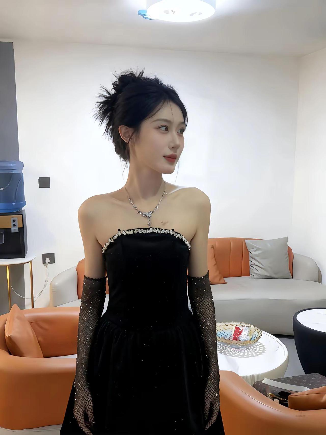 黑裙美腿简约到极致的美气质黑裙气质开叉黑裙露肩性感黑裙气质黑长裙时尚黑