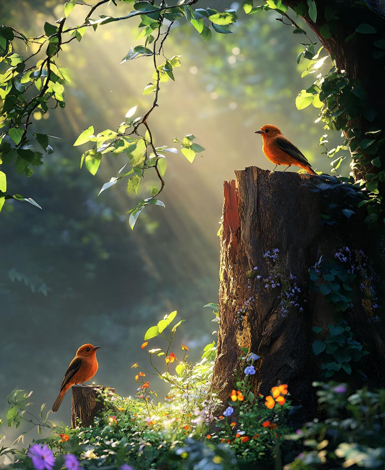 上联:枝头喜鹊踏枝唱下联:花间蜜蜂绕花舞
