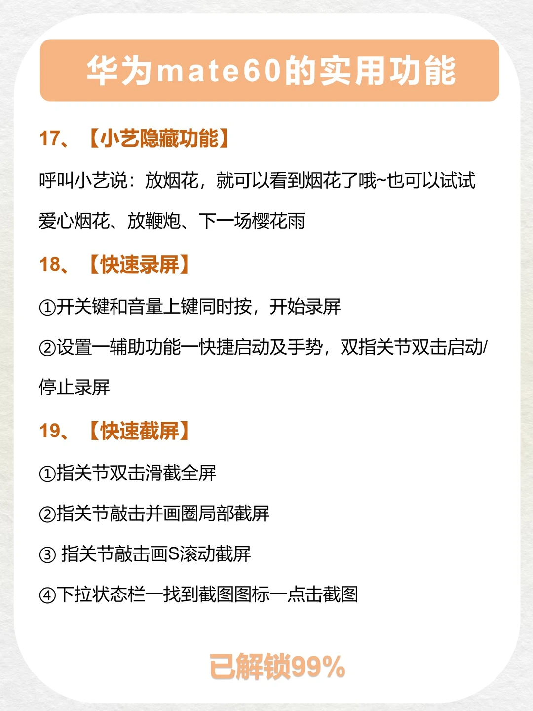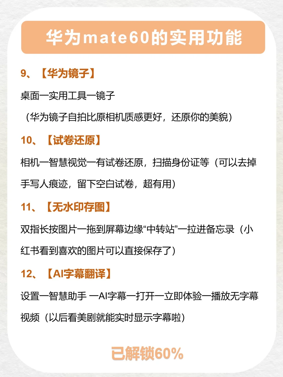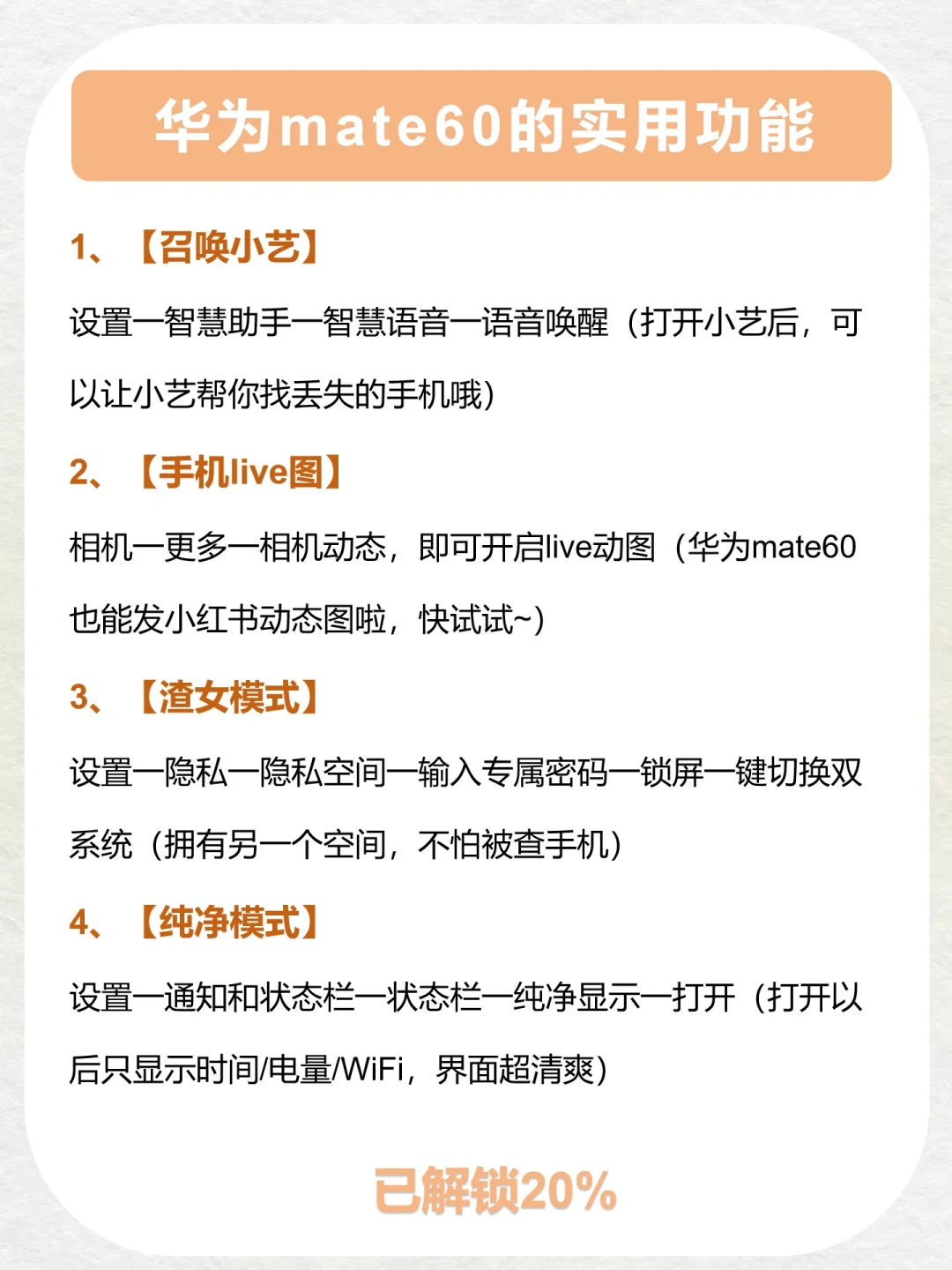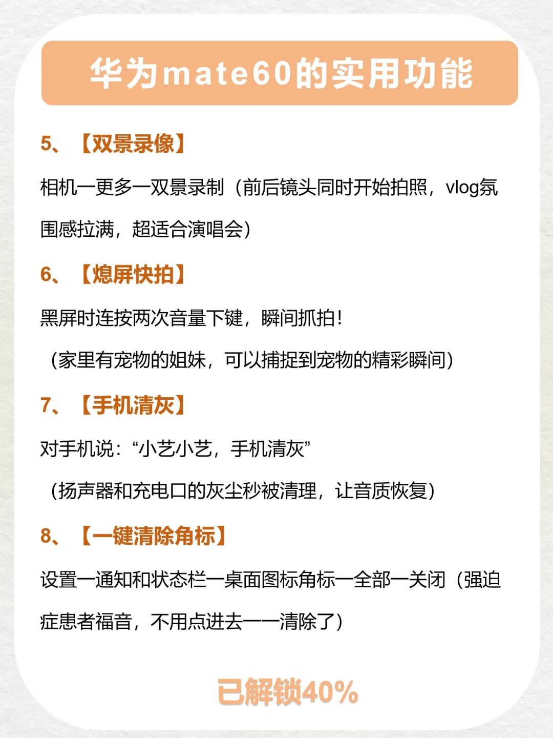 ❤️姐妹们,华为Mate60很多功能都被严重低估啦[赞R] - 🌟这19个功能涉及到了方方面面,快来学习啵 - 🌈姐妹们记得点赞收藏,以免要用的时候找不到啦,快快码住啵