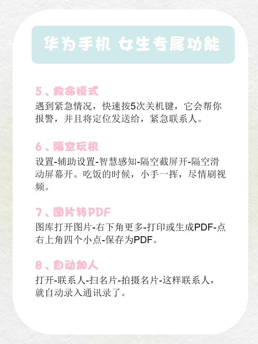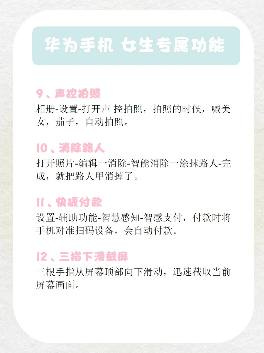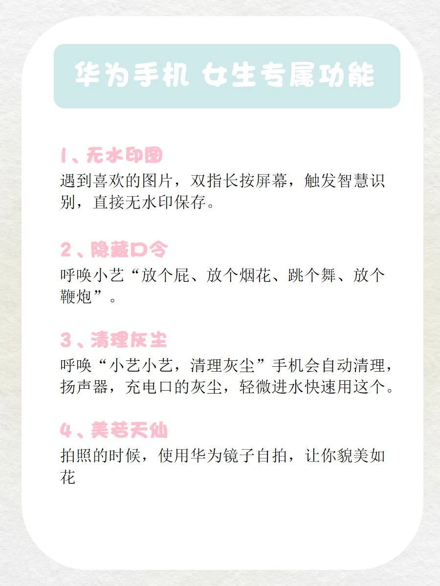 华为女孩速进‼️手机里竟藏着女生专属功能 🌟宝子们~你们好呀[飞吻R] 🌟今天欣欣整理了16个华为手机女生专属功能[赞R] 🌟华为的贝贝,快来分享一下华为的其他好用的功能趴💕💕💕