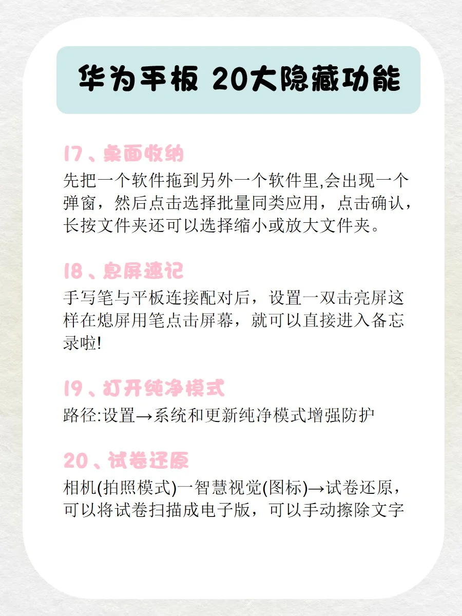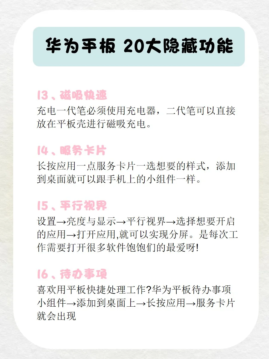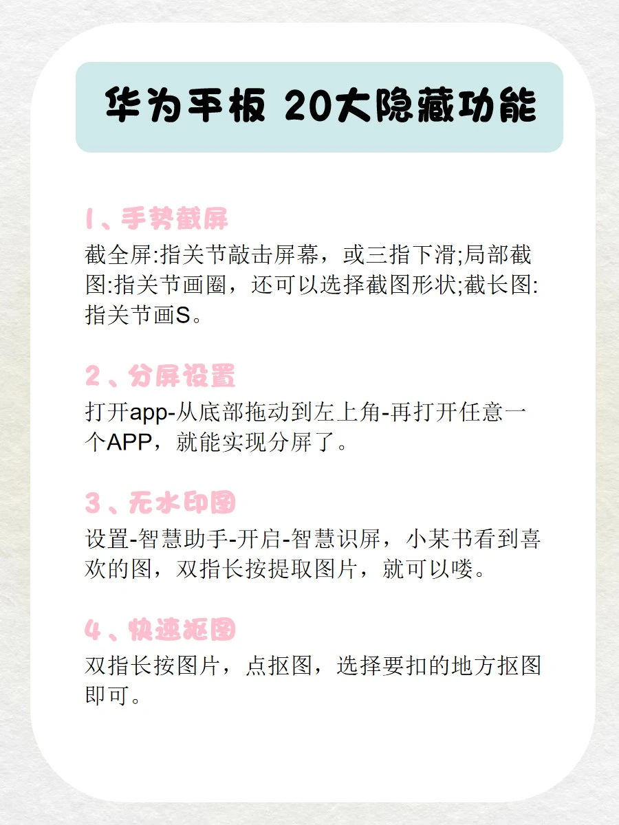 🌟宝子们~你们好呀[飞吻R] 🌟今天欣欣整理了,20个华为平板超级好用的隐藏功能[赞R] ✅赶紧码住,分享给你的闺蜜👯♀️一起看看趴💕💕💕