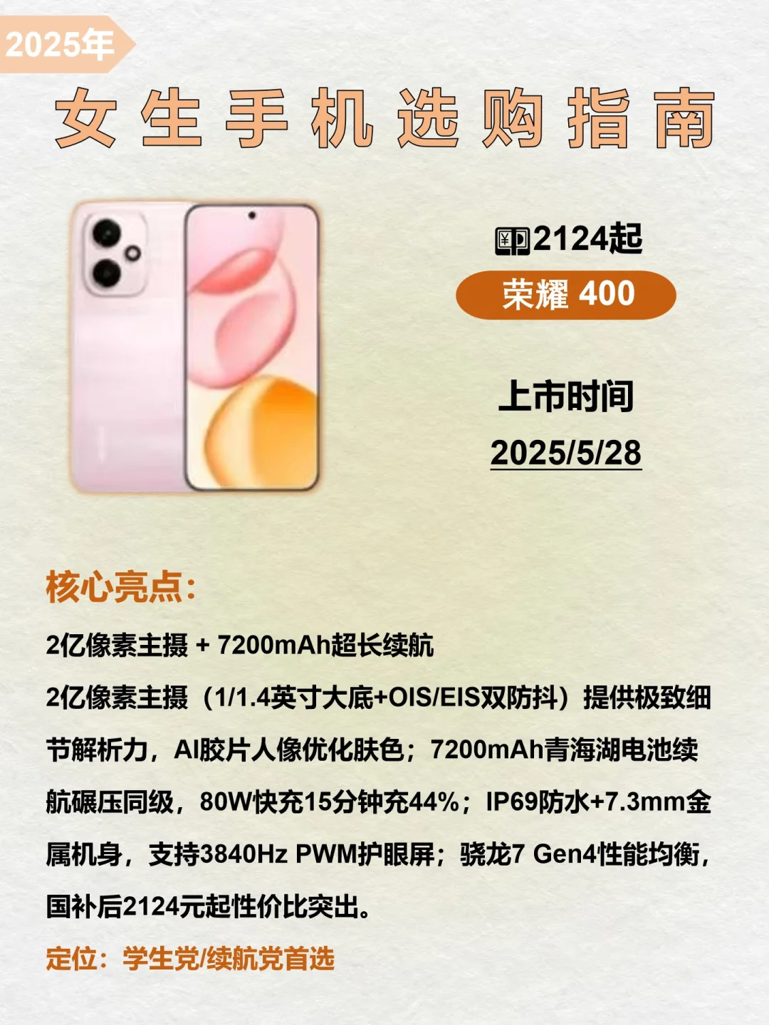 ✨荣耀400:护眼曲屏+AI写真模式,暗光自拍不糊脸!薄荷冰晶配色绝绝子,续航还超能打~