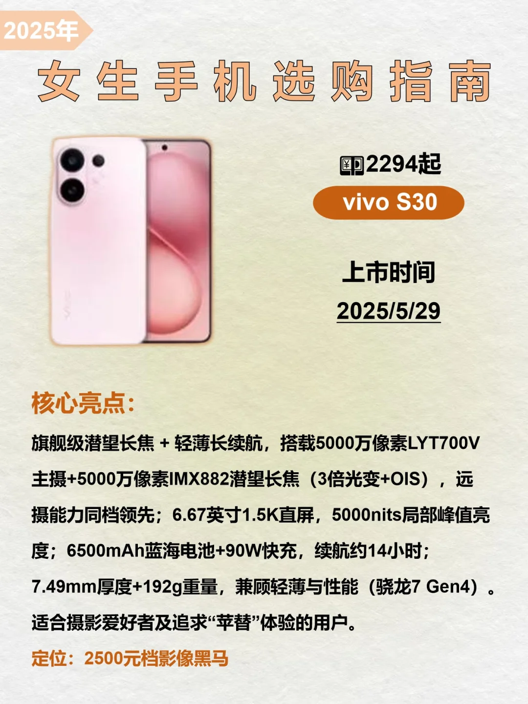 ✨vivo S30:柔光人像天花板!前置双摄+自然冷白皮滤镜,原图直出都发光~雾粉渐变玻璃后壳,轻到放小包无压力!