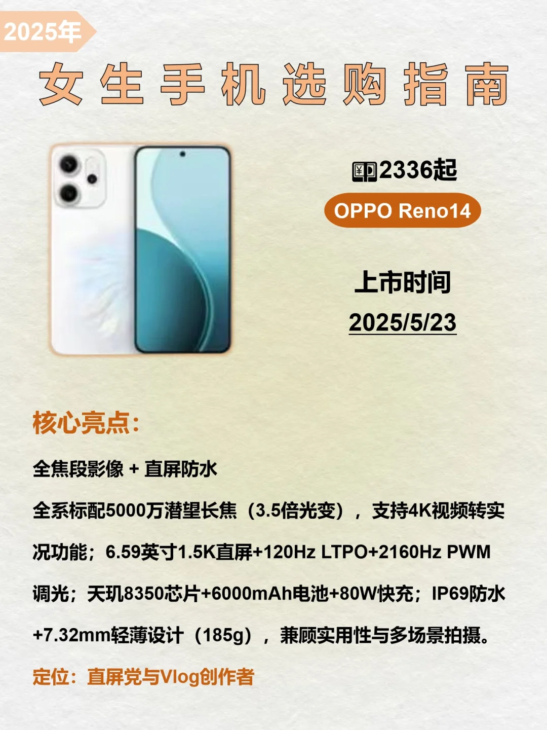 ✨OPPO Reno14:轻薄王者!6.3mm+174g,手感如羽毛~定制水光滤镜拍出通透感,锁骨发丝都清晰!
