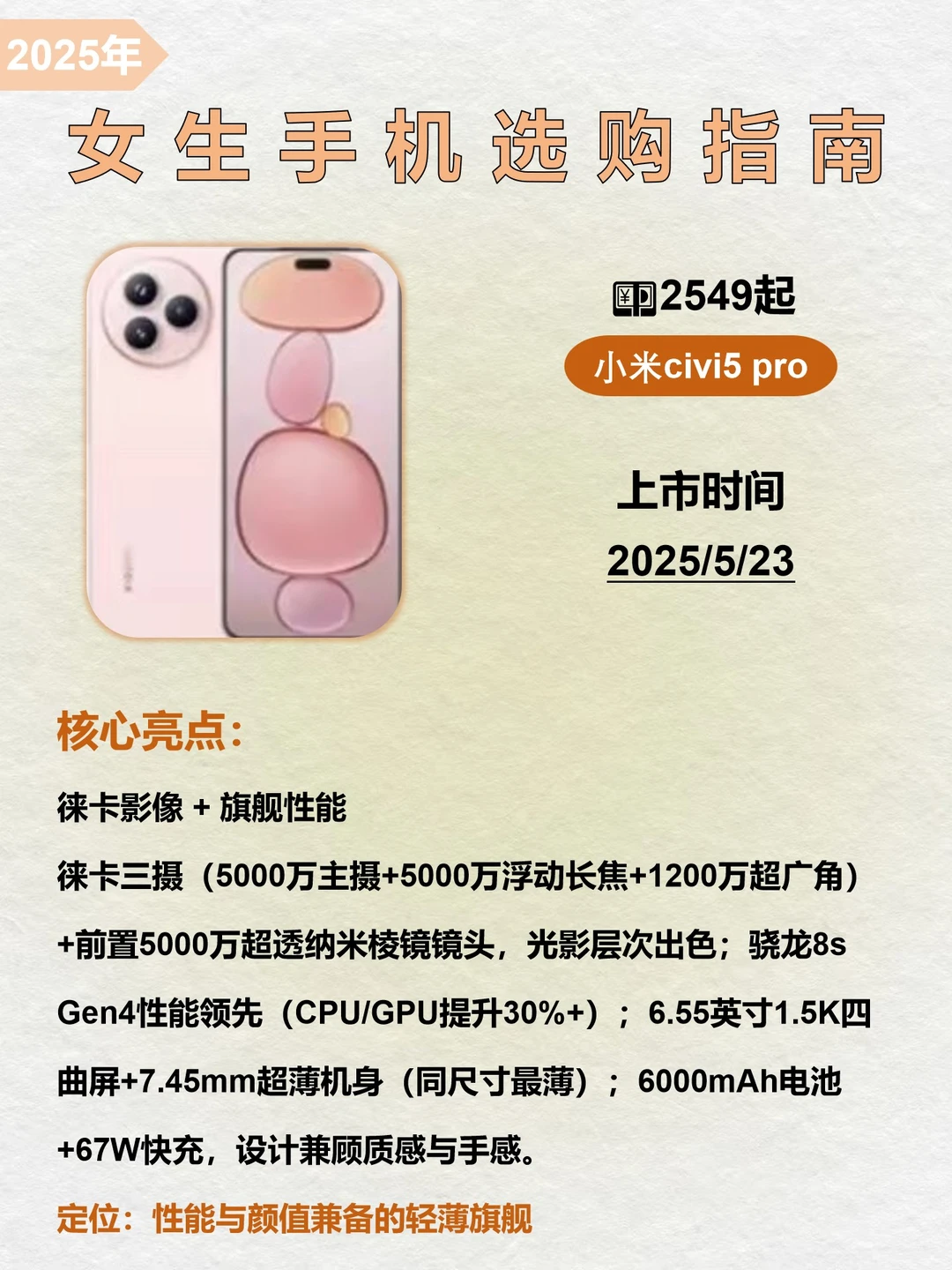 ✨小米Civi5 Pro:人像大师登场!单反级虚化+4K视频防抖,动态美照轻松拿捏~绒雾金磨砂质感,高级不沾指纹!
