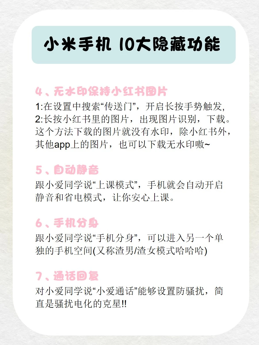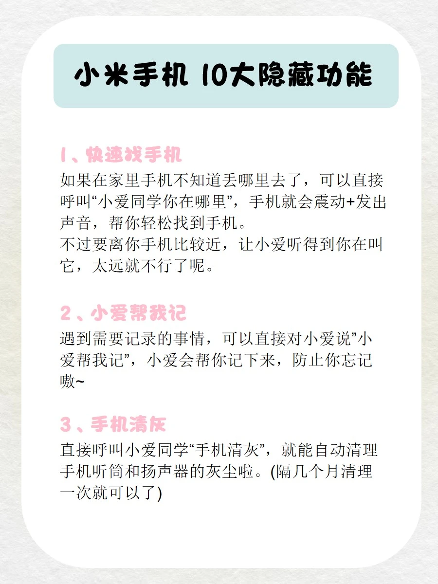 99%的人都不知道‼️小米十大隐藏功能🔥 🌟宝子们~你们好呀[飞吻R] 🌟今天欣欣挖到了,小米十大超级好用的隐藏功能[派对R]让你的手机秒变贴心生活小助手[赞R] ✅步骤超级简单‼️快at你的闺蜜👭一起学起来趴💕💕💕