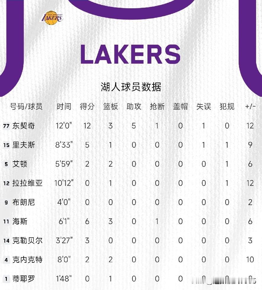 八村塁、斯玛特休战,布朗尼首发战雄鹿。 首节比赛布朗尼上场4分钟,0分(三分球1投0中)0板0助,正负值为+2。东契奇12分3板5助,湖人30:18领先雄鹿12分。 同时蒂耶罗今日也复出了,首节替补登场1分48秒,抢下1个篮板。