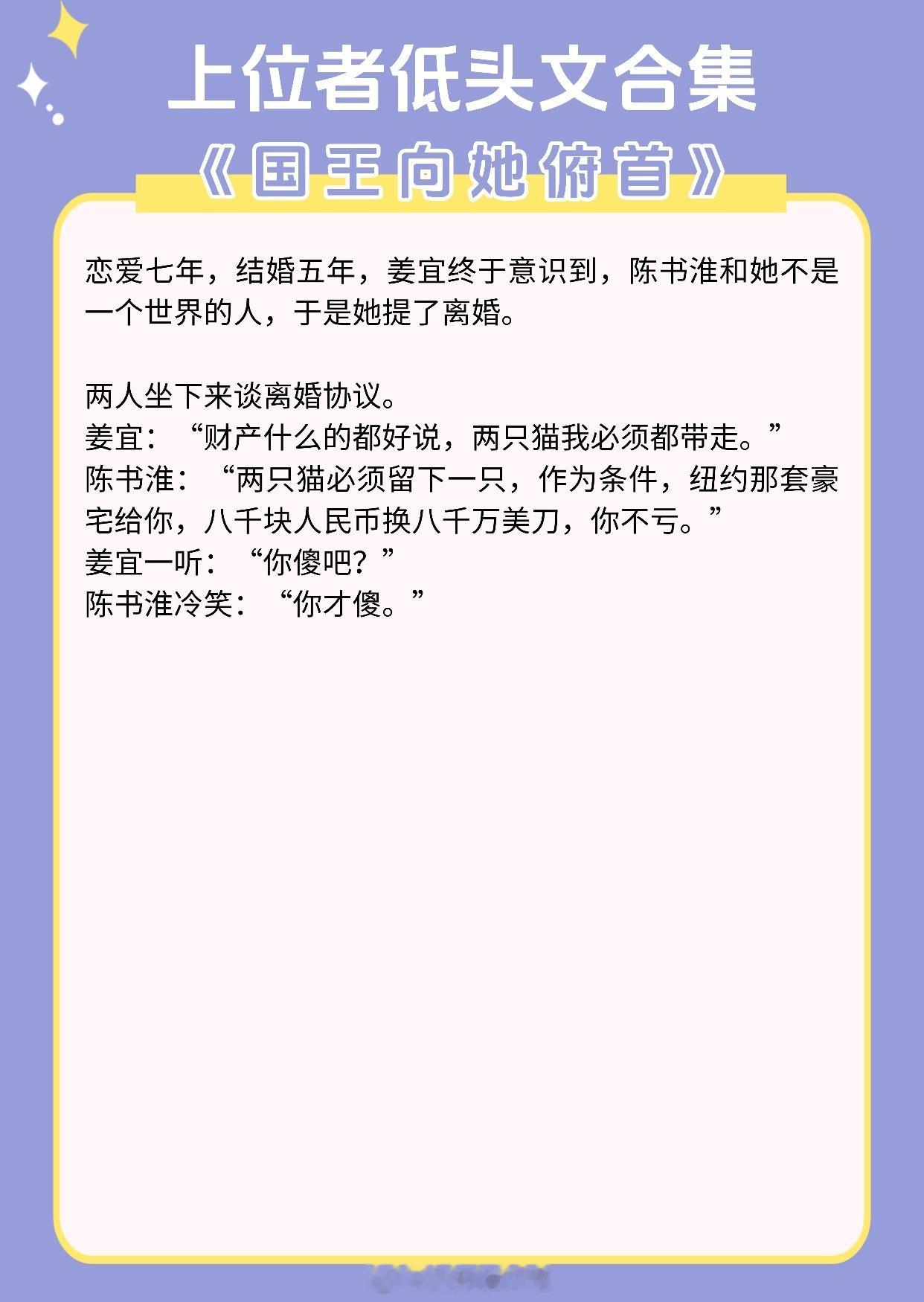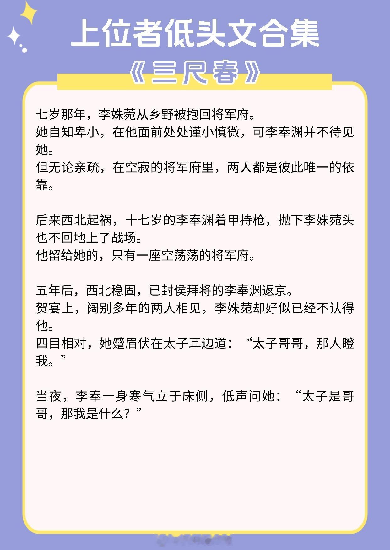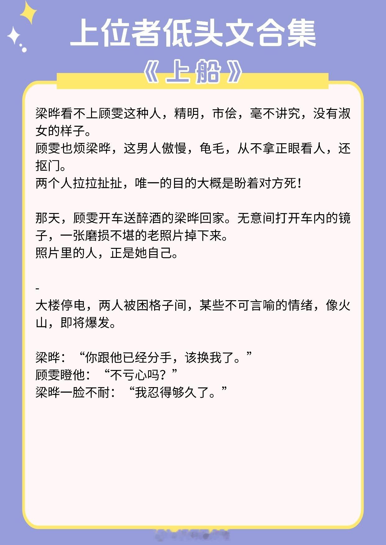 【上位者低头文】我不是现在才爱你,是现在才告诉你。《戒断后遗症》作者:千载之下《胭脂看客》作者:孟宋《保护色》作者:锦换《关于替代》作者:取名狂魔小洋《三尺春》作者:长青长白《二嫁天子》 作者:石上清泉《国王向她俯首》作者:白日梦羊《上船》作者:唯酒《鲜红淡绿》作者:勖力
