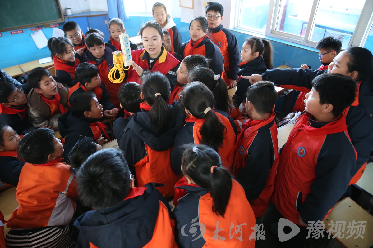 11月18日9时许,河南博爱县秀珠小学四年级6班教室,“电老师”正与同学们以互动的形式宣讲电气火灾知识。