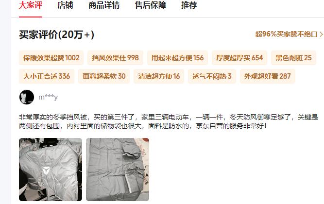 近日,雅迪正式发布了自家的挡风被,是的,您没有看错,雅迪也开始生产并销售挡风被了,而且还开了一个发布会。 在某网络平台上,可以看到该挡风被的好评还是非常多的,比如挡风被保暖效果好、厚度很厚实、面料超柔软、透气不闷热、大小正合适、外观超好看、黑色更耐脏的评价,而且好评率超过了96%,可以看出该挡风被的评价还是非常不错的。 同时该挡风被的网络评价超过了20万,说明该挡风被早已经开始销售,只是近期刚刚开了发布会而已。 使用挡风被,在冬季是电动车车主的出行神器,不过车主要注意,电动车安装挡风被以后,小心交警查车,不管是雅迪的挡风被,还是其他品牌的,都属于违规行为,很多城市限制电动车安装挡风被。