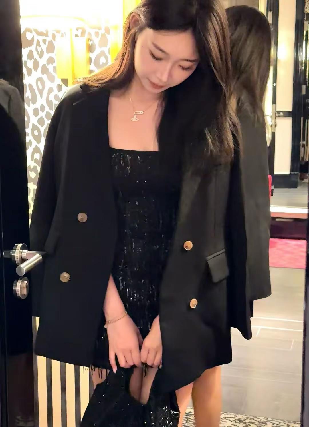 这身黑套装太好看了!短款上衣+短裙刚好显腿长,光腿神器配厚底长靴