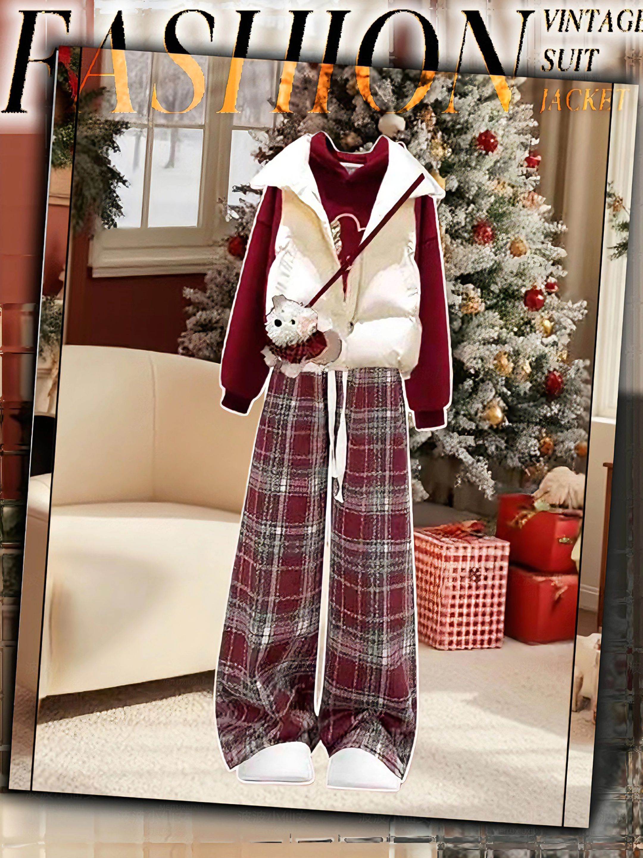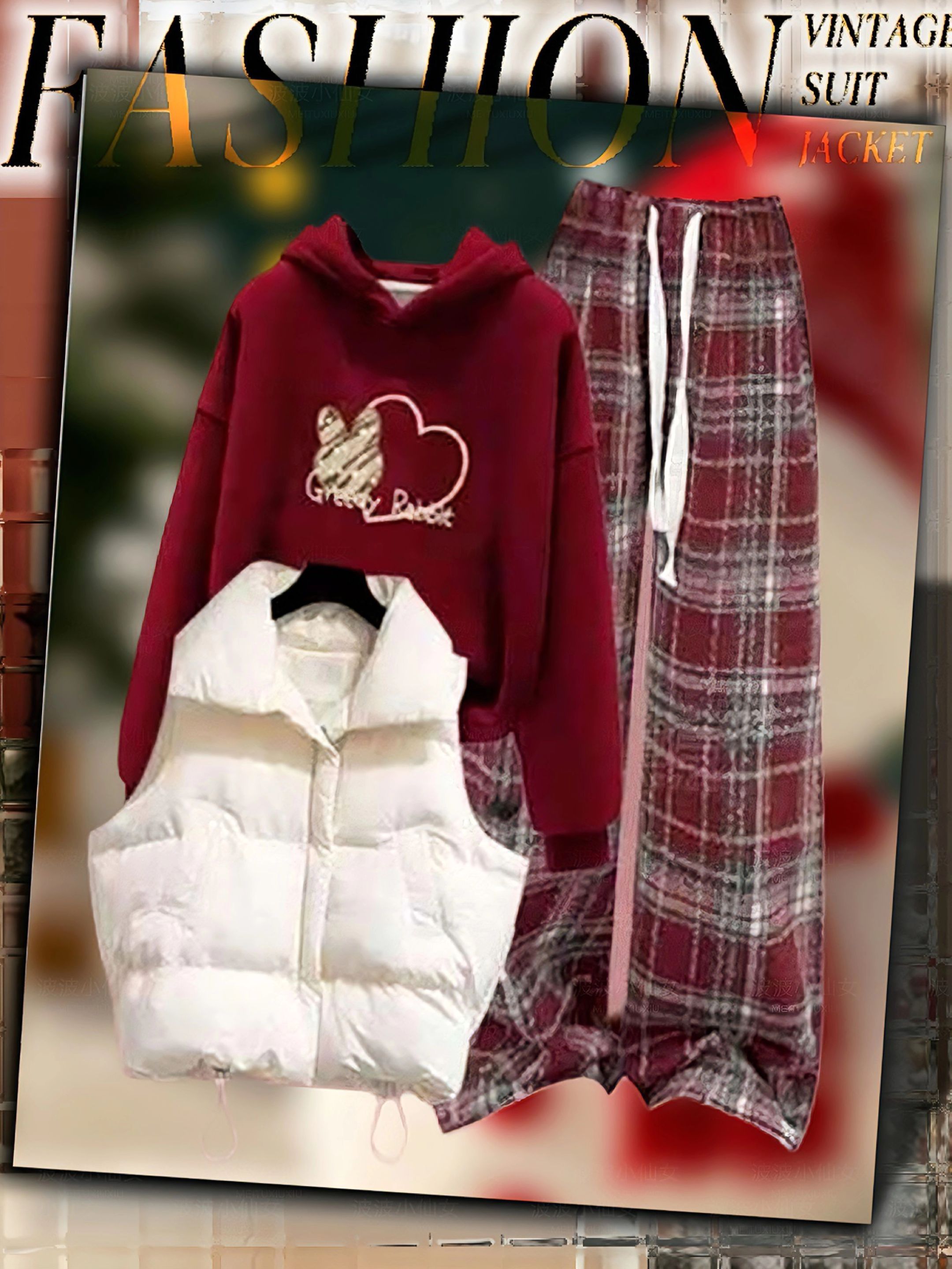 女大童初中生时尚马甲套装盐系穿搭红色加绒卫衣加厚阔腿裤三件套图文伙伴计划2025 套装穿搭 秋冬穿搭测评 谁穿谁好看 普通人秋冬的一周穿搭