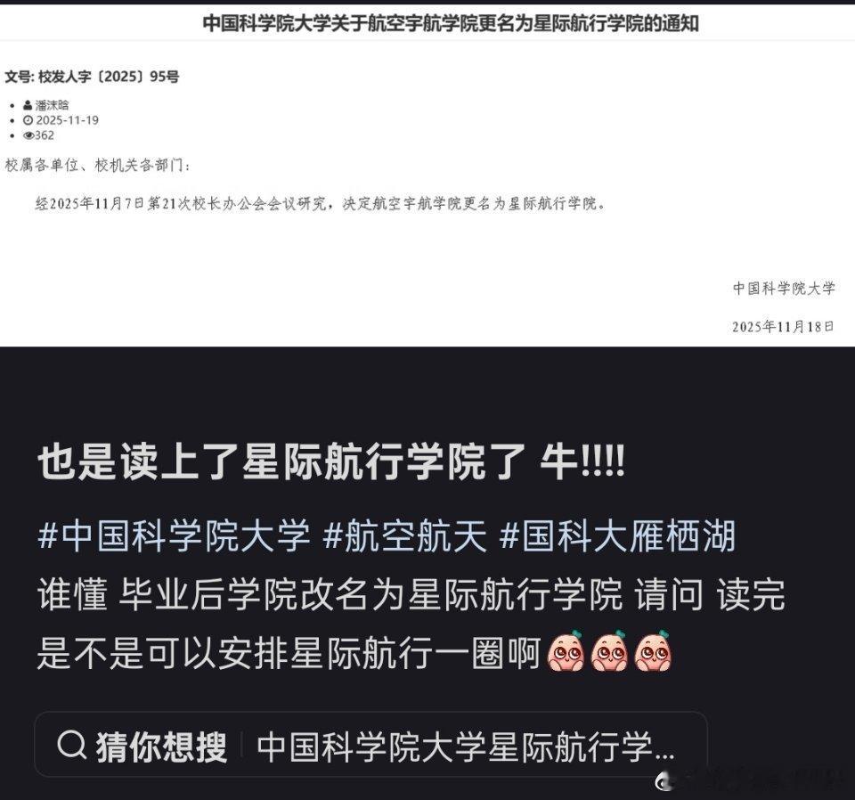 【航空宇航学院】正式更名【星际航行学院】起初大家以为只是玩梗,没想到是真的,中国科学院大学的选课系统已经改名了。是不是可以安排毕业生星际航行一圈啊。