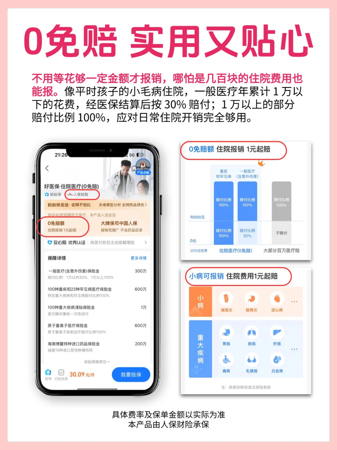 我也是做了好多功课,最后才发现支付宝上人保财险承保的这款【好医保・住院医疗(0 免赔)】特别适合给孩子买,主要是这几点让我比较满意