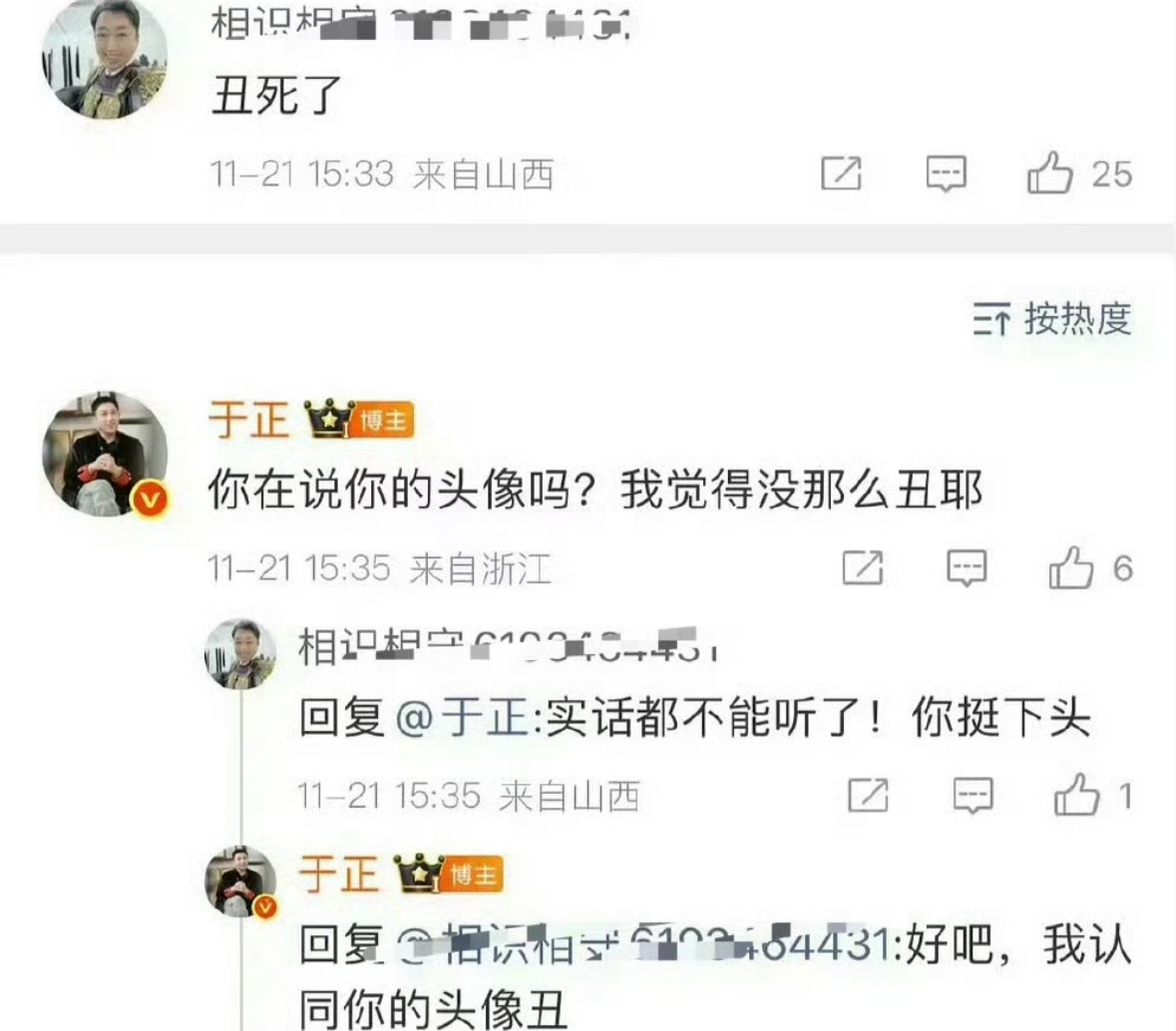 陈哲远粉丝又把于正弄破防了哈哈哈哈