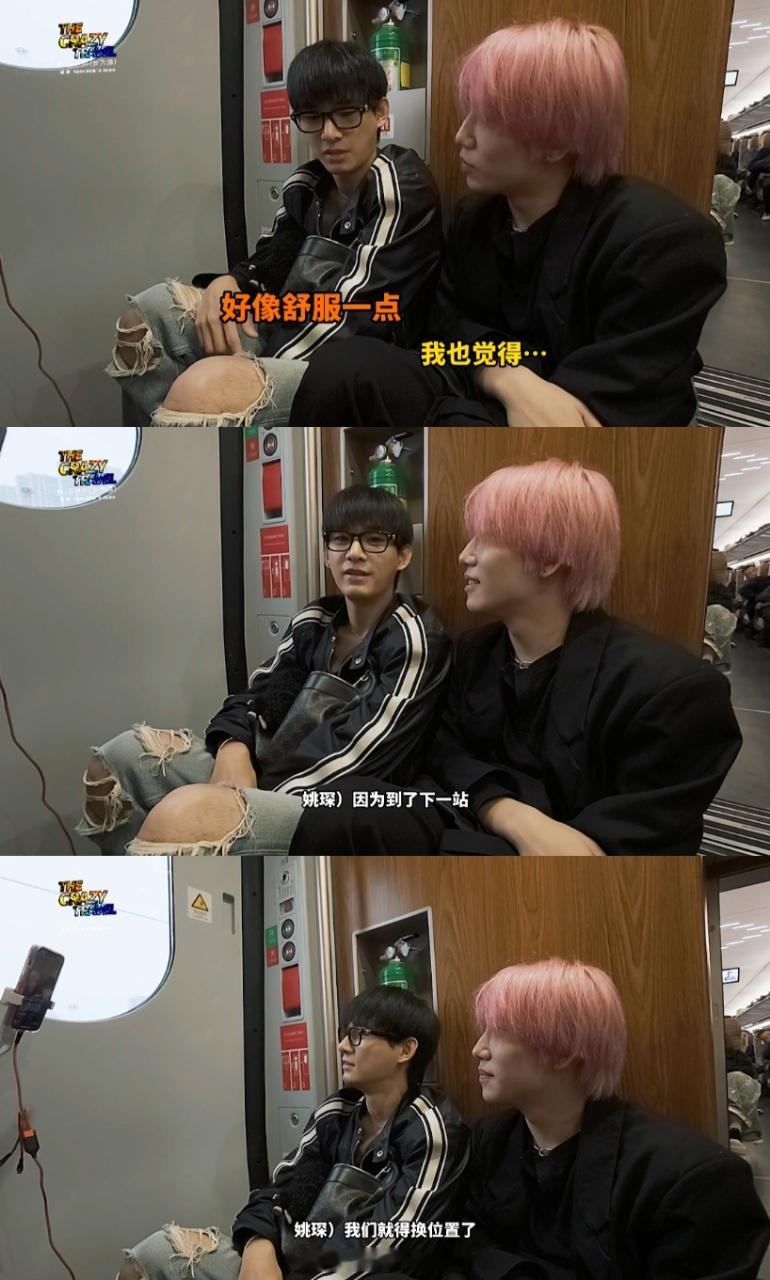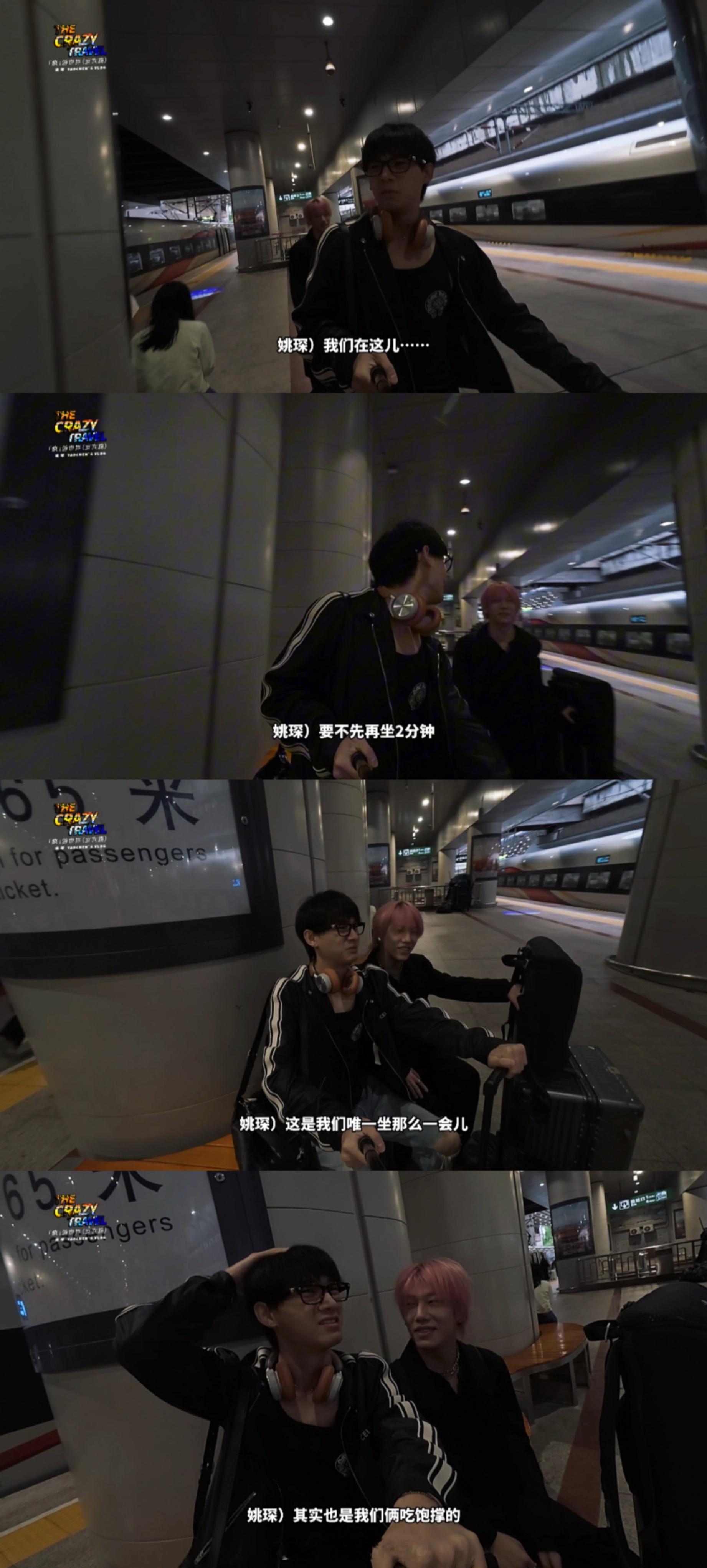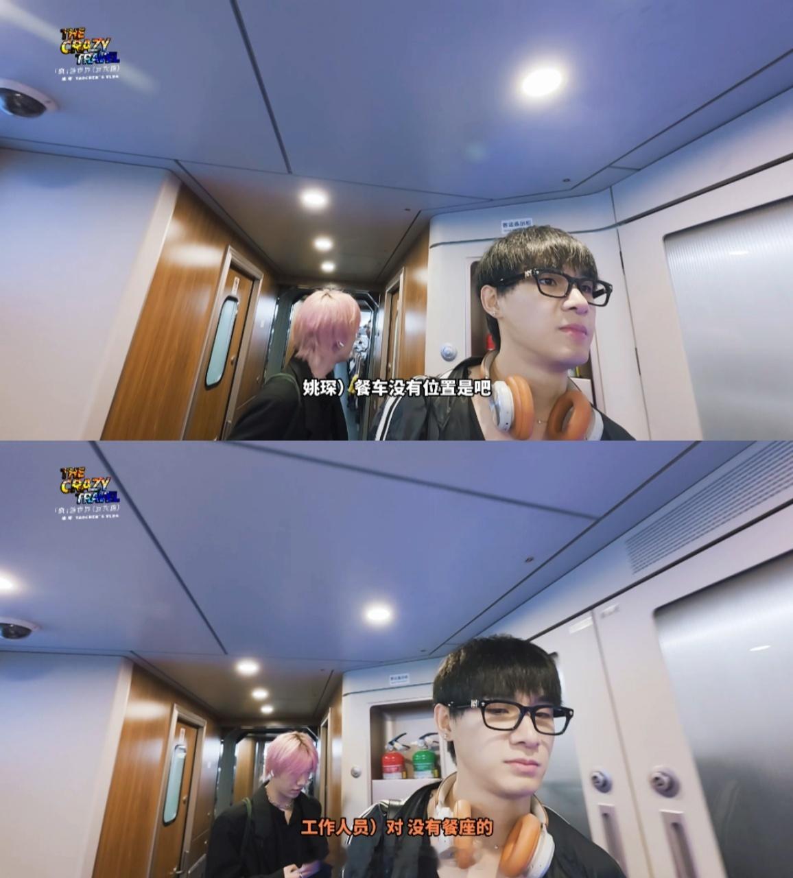 人倒霉到一定程度真的会笑出来的,是吧姚琛。抽中无座直达宜宾就很命苦了,在车上想消费一下买餐换座位结果得知餐车没座,好不容易找到没人坐的位置刚睡着就被喊起来,跟梓豪蹲在车厢连接处被路过大哥当成是卖扑克牌的,两个人吃饭发现买四份饭可以坐飞机,姚琛虽然你命苦但你实在是有梗啊。