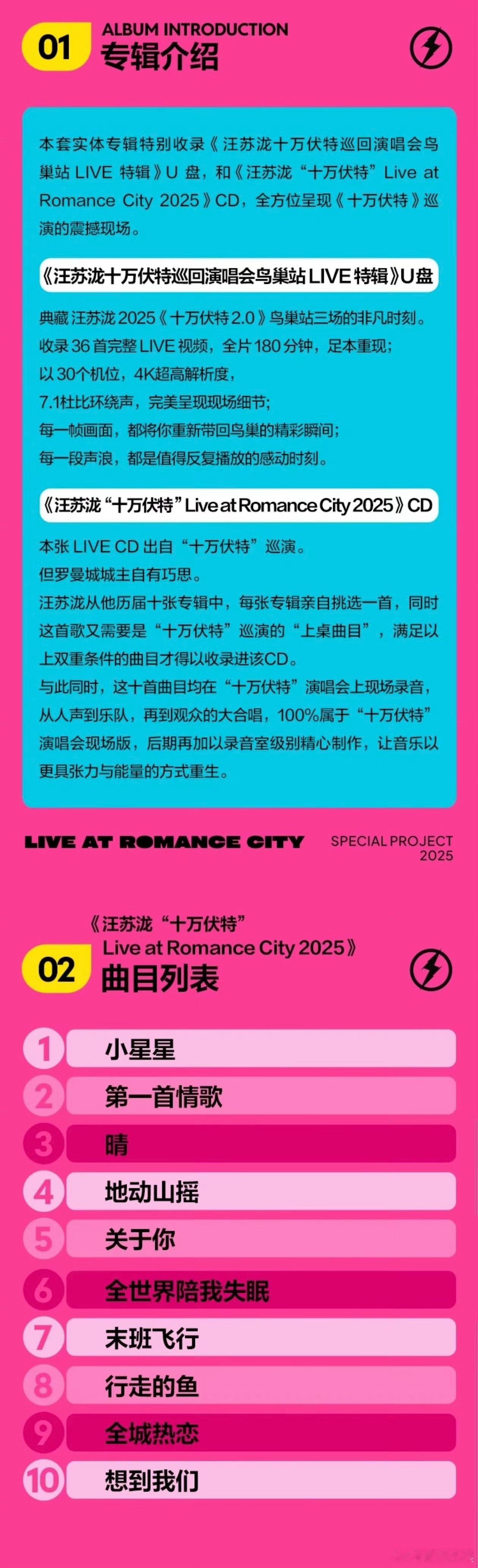 汪苏泷这波实体特辑直接把鸟巢的热血焊进DNA里了!谁还在怀念罗曼城三场连开的狂欢时刻?现在预约就能把这份独家记忆打包带回家!36首歌+180分钟完整呈现,30个机位怼脸拍就算了,4K超清画质连舞台灯光的光斑都看得清清楚楚,7.1杜比环绕声一戴,瞬间穿越回几万人一起大合唱的人海里,鸡皮疙瘩直接起满全身!更绝的是十首CD专属曲目!从十张专辑里一首首精挑细选,还得是巡演必唱的“上桌歌”,100%现场录音保留了观众合唱的烟火气,再加上录音室级别的后期打磨,每首歌都燃到骨子里,循环一百遍都不腻~11月24日10:00正式上线,我先去预约一个!