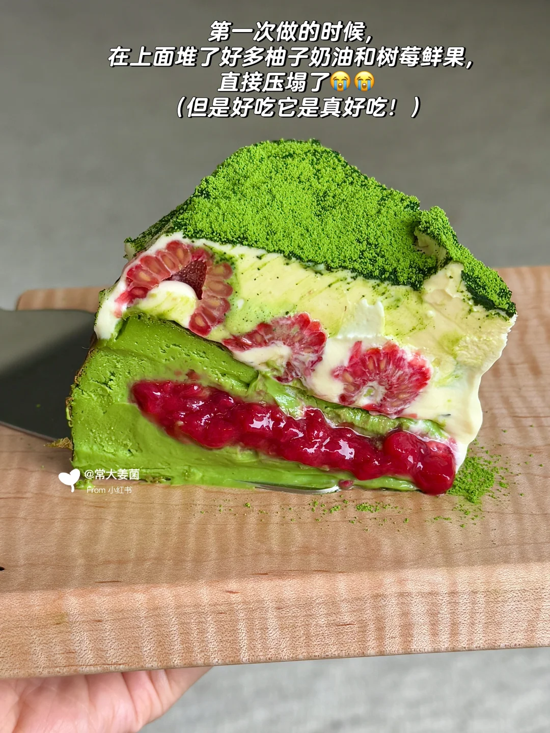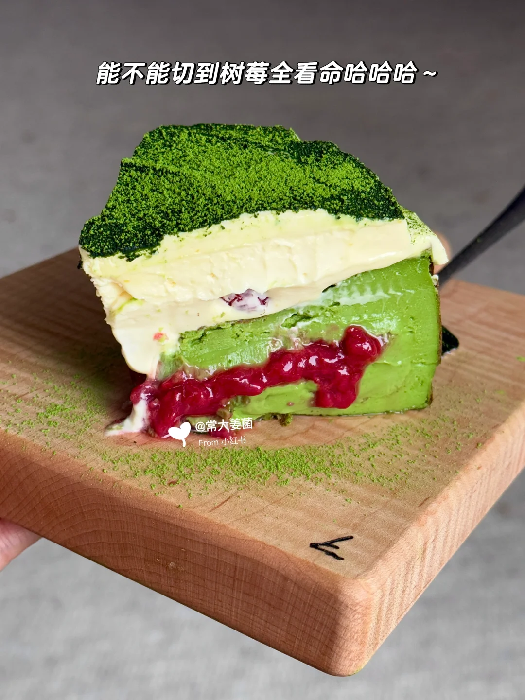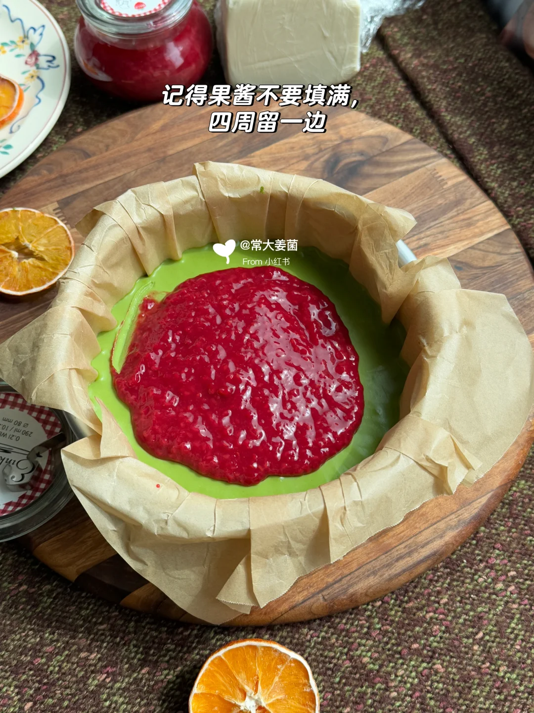 树莓酱是果酱里俺的心头好! 把它和浓郁坚果香的开心果巴斯克结合一下子, 哇~~一整个新世界打开在你眼前!! ⚠️: 果酱不要放太厚,最后全给你吐出来😭(见最后一张图) 不仅切出来报看,但凡您流心做的稍微大一点,它直接就一摊🥹🥹