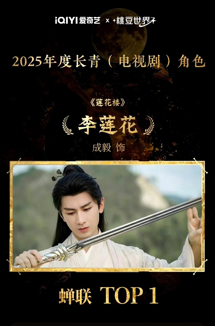 成毅王权富贵登顶2025年度喜爱男性角色TOP1成毅李莲花登顶2025年度长青角