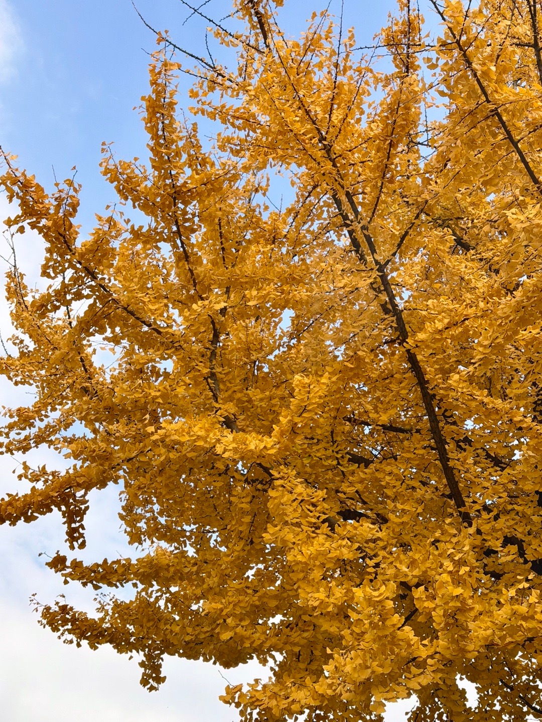 银杏时光隧道,抬头是树枝交错而成的金色天空,低头是树叶堆叠而成的金色海洋。