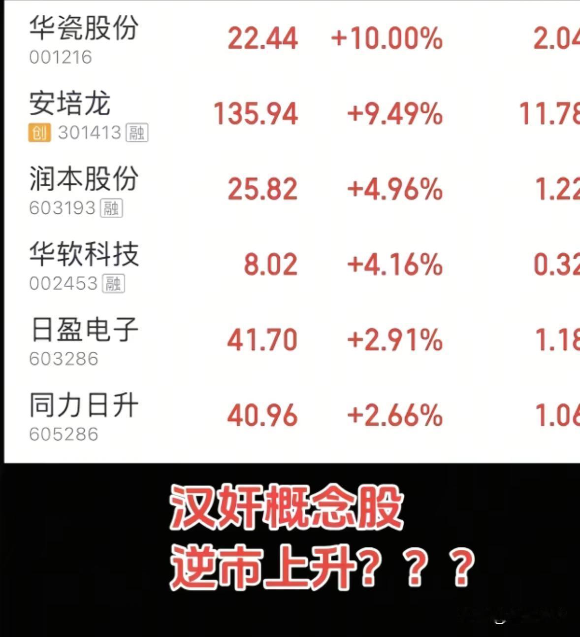 两天跌了我两个月工资,我本来很郁闷了,结果刷到个汉奸概念股逆势上涨,我无语他妈给无语开门——无语到家了。这还能玄学?华瓷,华软?安培——安倍?后面三个带日?