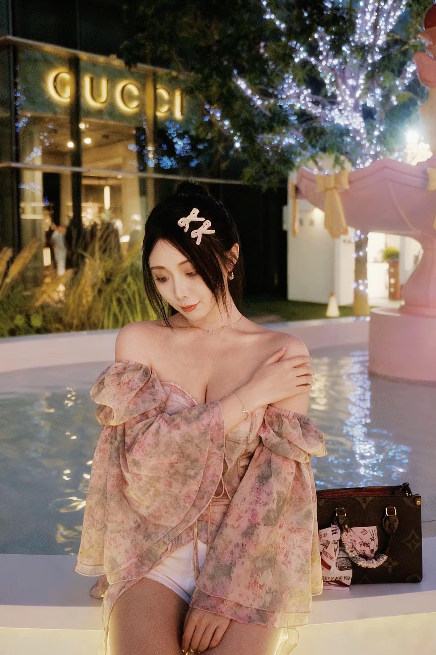 黄昏日美女 法式穿搭 随性慵懒风 夜景 蜜桃女孩