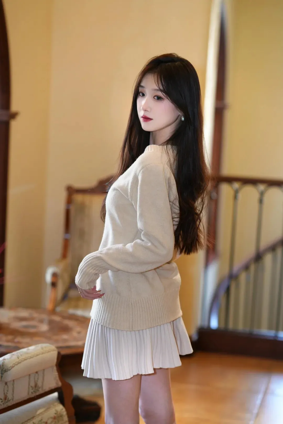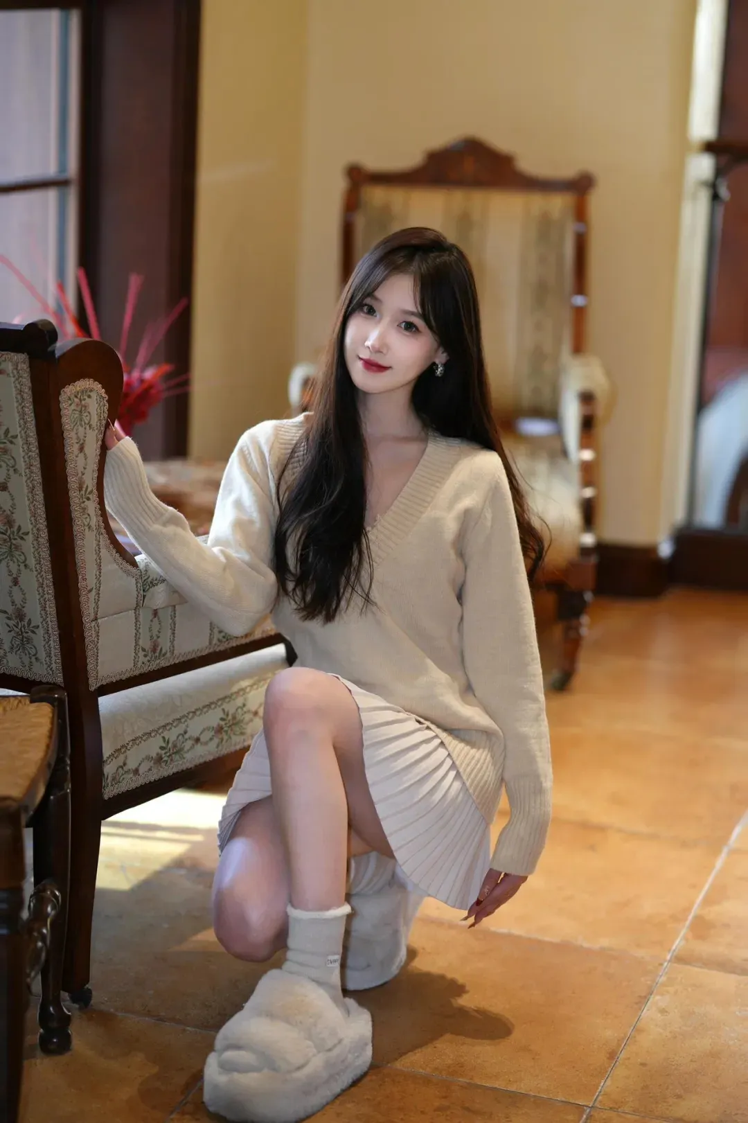 温柔甜美的室内自拍,法式优雅穿搭、 甜妹😜