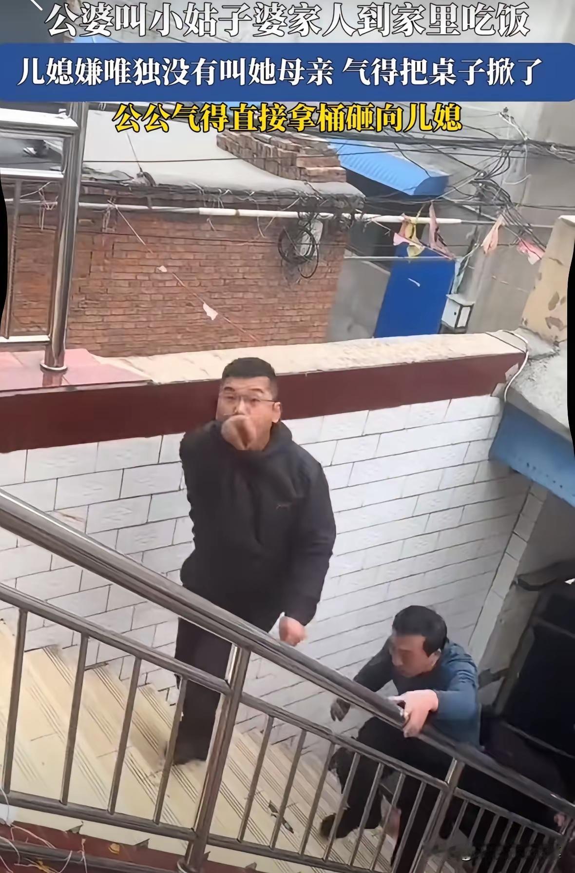 公公婆婆做了好吃的,把小姑子婆家人都叫来吃饭了,唯独没有叫儿媳妇的娘家人。 儿媳妇非常生气,于是把刚做好的一桌子菜掀翻了。 公公气的直接拿桶砸儿媳,并且上楼对儿媳骂骂咧咧。 网友评论: 对,该有脾气的时候有脾气,掀翻桌子,公公婆婆欺负儿媳妇不对,儿媳妇从娘家嫁进婆家,婆家应该对儿媳妇好。 这媳妇还是做得不对,公婆请姑子那边的亲人吃餐饭这不是很好的事吗,人情世故,来来往往,下次请你娘家人来,不也一样吗。 儿媳妇头脑拎不清,公公婆婆请自已小孩吃饭太正常了,连带着请你娘家人算什么回事。 公婆疼闺女,低三下四的讨好亲家来吃家宴,儿媳妇的这口气应该回娘家出,若自己父母也疼自己,那就应该家宴请公婆过去走动,而不是怪公婆不请自己父母过来走动。 婆家吃饭,叫你爸妈干啥?你回娘家不也是这待遇吗?难道把你公公婆婆也带去?不能理解。