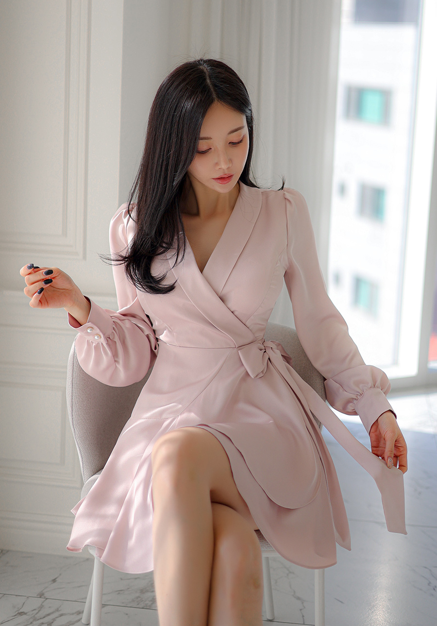 孙允珠优雅气质,浅粉色连衣裙,甜美迷人,闪耀细节,时尚高跟鞋,完美搭配!