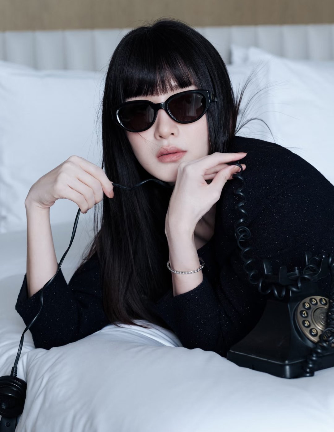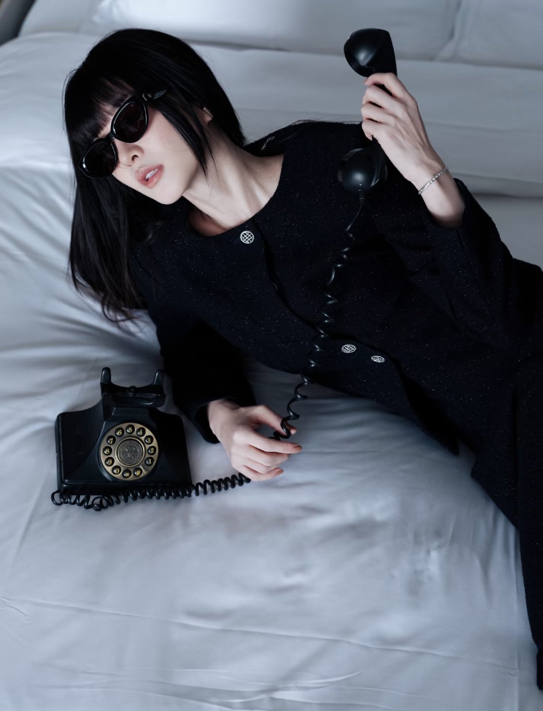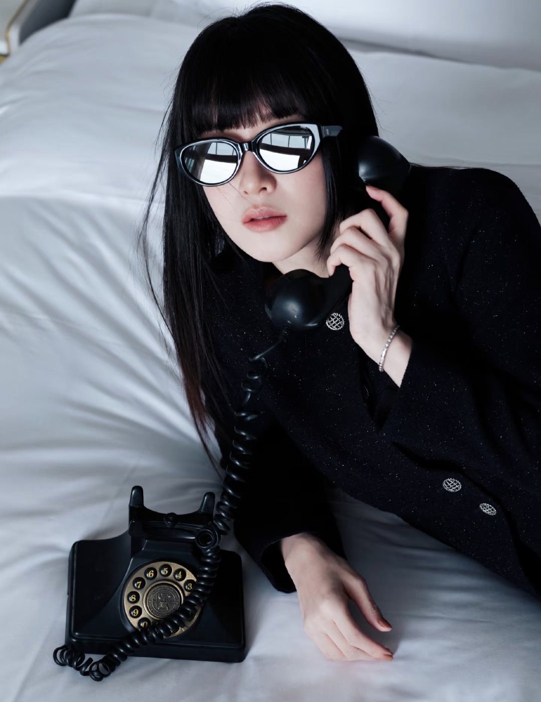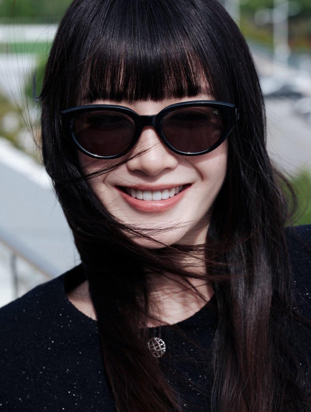 江疏影的一组齐刘海+黑色时尚穿搭图~