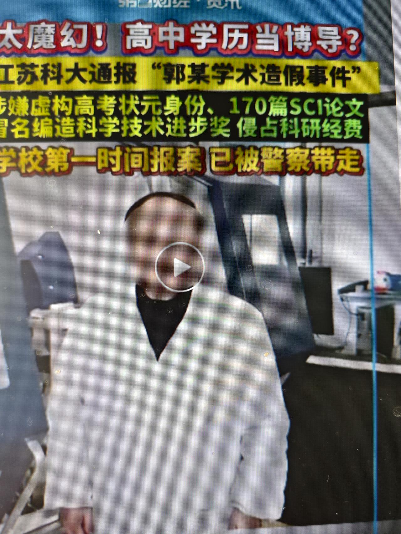 郭某评院士被曝光 郭某,我是说江苏科技大学的前首席科学家、前二级教授、前博士生导师郭伟。 今年9月份,在评选院士的时候,他被发现简历学历有假。后来,被学校以“学术严重不端”辞退。继而又被警方以“涉嫌学术造假、侵占科研经费”等带走。 相信等待郭某的肯定会是法律的严惩。 说到院士评审,今天我国两院公布了2025年评选的院士名单,看完这些院士的简历以及研究成果,的确是科研精英。 不过,我也发现个问题,这些科技精英们,他们当选为院士,都是“专家”评选出来的。 既然是评选出来的,那么,我查了查郭某,从2023年被聘为江苏科技大学的首席科学家之后,到2025年9月份事发,他的研究成果也是非常突出的。 比如说,郭某主持研发的1600Mpa钛合金油井管技术,解决国际难题,并入选2024年行业十大科技进展。 又比如,郭某主持并实现多项海外“卡脖子”攻关重点科研项目,包括“新型高强高韧富β钛合金油井管”、“超低温强韧钛合金”等科研成果。 关键的是,郭某还有6项专利。 据澎湃新闻今天报道,国家知识产权局专利公告显示,今年,郭某牵头申报了6项专利,合作者中包括江苏科技大学的校内领导干部。 显然就说,郭某自从2023年被评为江苏科技大学的首席科学家之后,科研成果非常突出,甚至还有6项专利申报。 也就是说,不查简历与学历,仅仅凭借他在江苏科技大学这两年的科研成果,郭某担任首席科学家,还是非常称职的。 难道不是吗?这些科研成果可都是媒体公开报道的,6项专利也是专利局公告显示的,这能是假的吗?还会是伪劣的吗? 有位今年退学的郭某在江苏科技大学带过的研究生吐槽,郭某不讲课,带研究生只提要求,两年时间就带他一个研究生,而他已经退学了。 说实话,我看郭某面相,还是非常憨厚朴实、具有高智商科研精英的形象。 若评选院士不看学历简历,而只是看科研成果的话,我觉得,郭某绝对符合院士的标准。 反正,国内院士都是评选的,看的是科研成果而已。不如俄罗斯外籍院士,纯粹掏钱就行。 另外一点,郭某应该研究文科内容。呵呵,也就是文科没有标准,其实他研究理工科,甚至纳米材料领域,不也照样如鱼得水嘛。 问题是,两项科研成果和6项专利可都是货真价实的。货真价实的秘密在于“合作者包括校内领导干部”。 其实,不仅仅是郭某如此,就是看国内两院院士,身为“领导干部”的也不少。这些科技精英,既能做好科研工作,又能做好行政管理,真的是精力旺盛能力突出。 看到如今我国的两院院士已经超过2000名了,非常感慨。幸好郭某被发现学历简历造假,不然的话,他要是成为院士,不就丢人丢大发了。 或许,我以为科研成果不该是评选的,有且只有在实践中发挥作用,有实际应用,如此才能够算成果吧。 至于说基础研究,这是无法评选,也不需要评选的,就别搞那么多奖项了。这方面成果突出的话,自有“洋奖项”。 最后,我以为郭某因为学历简历造假被曝光,有点可惜。毕竟,他的科研成果和专利是真实存在的。
