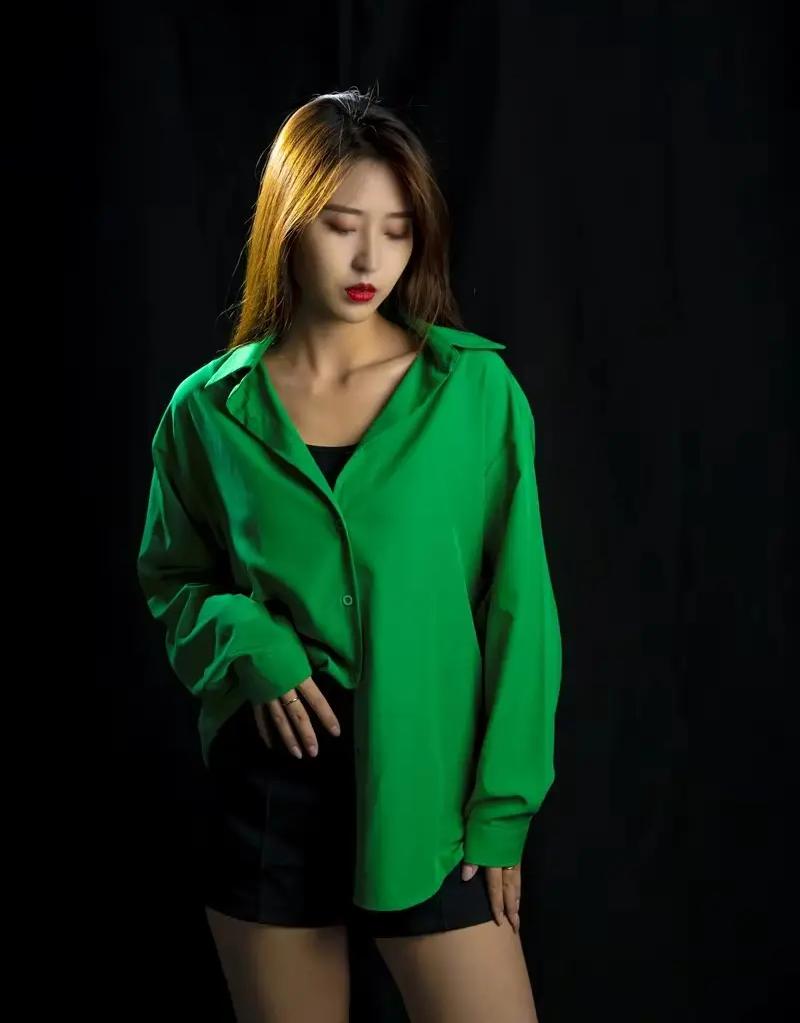 小姐姐穿搭好清新!浅粉色宽松衬衫配黑短裤,搭小白鞋清爽又好看,这气质真让人挪不开
