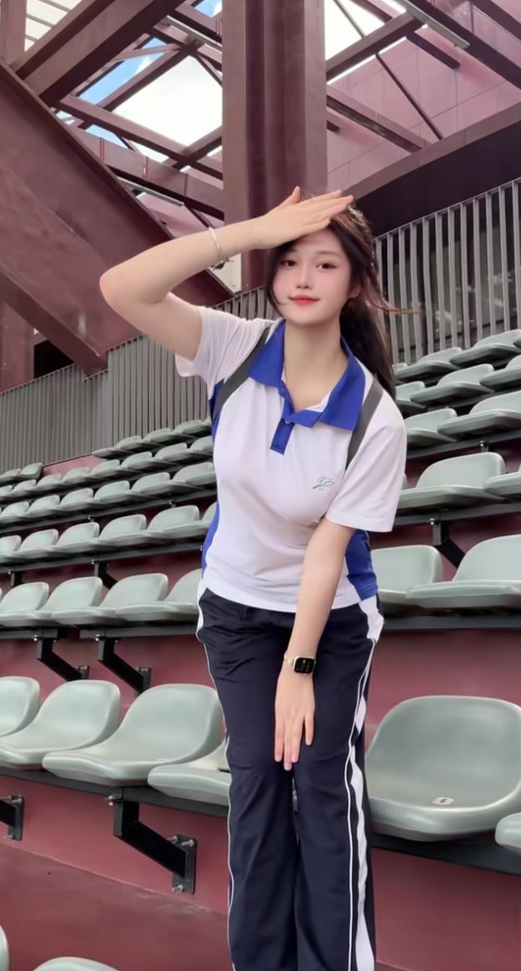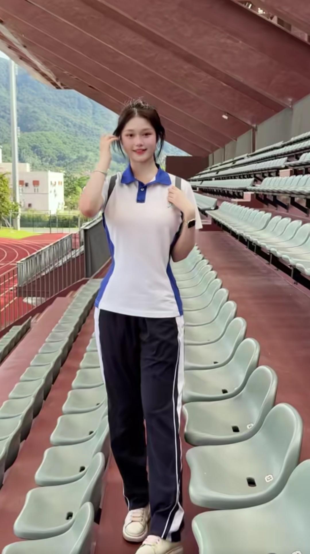 校园操场的椅子,历来是青春自拍的理想背景。瞧那在操场椅子上用深圳校服女生款自拍的场景,白色校服清新减龄,与操场的绿茵、蓝天相互映衬,美到极致。 美女在操场椅子上留影,藏青色与白色的搭配,将青春感展现得淋漓尽致,宛如从漫画中走出的女孩。在操场椅子上用校服自拍,定格的不只是画面,更是独一无二的青春。