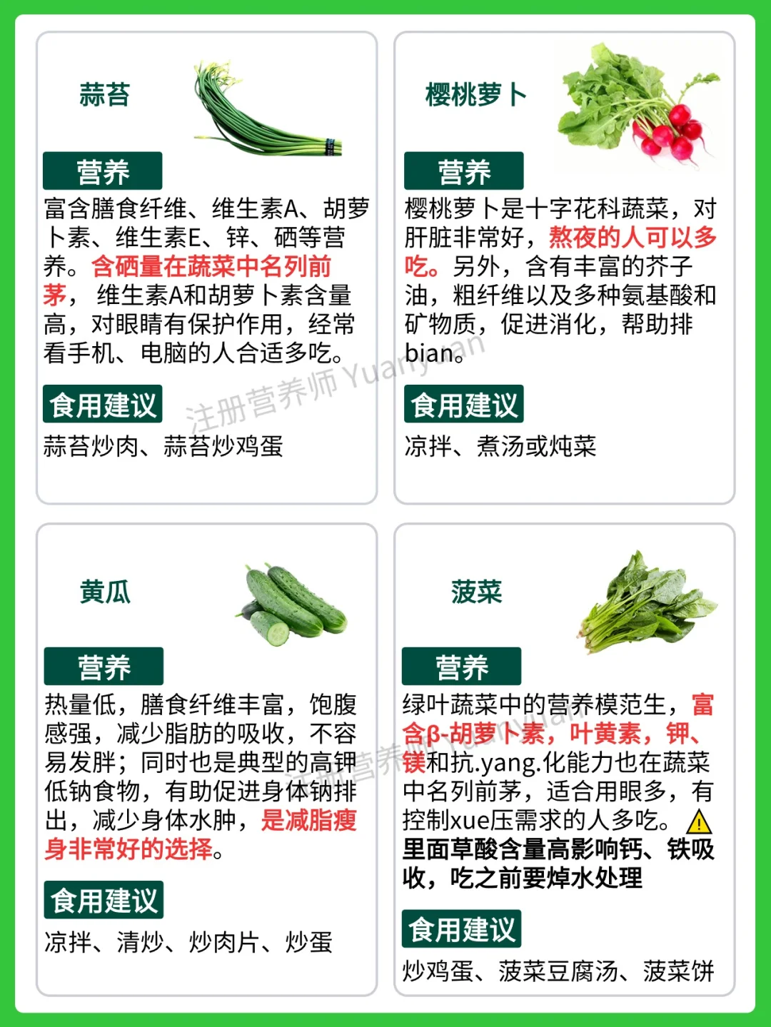 整理了5月应季蔬菜营养价值,适合人群和注意事项,大家可上图查看。