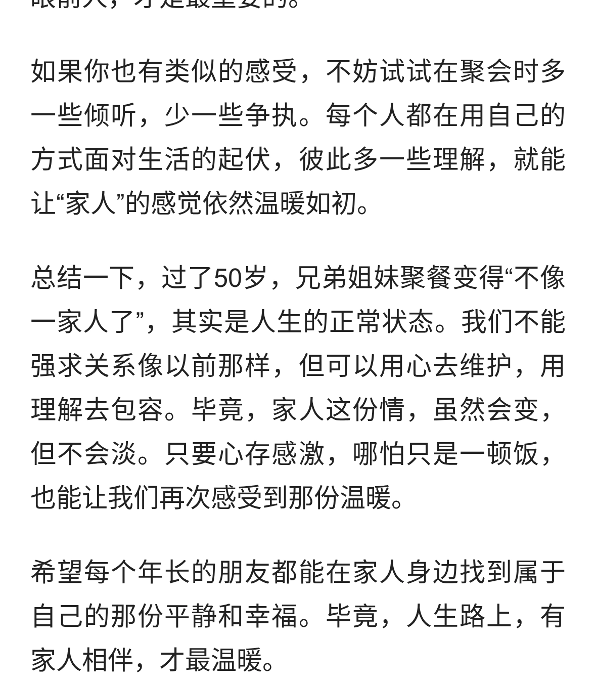 过了50,兄弟姐妹聚餐竟变得不一样了