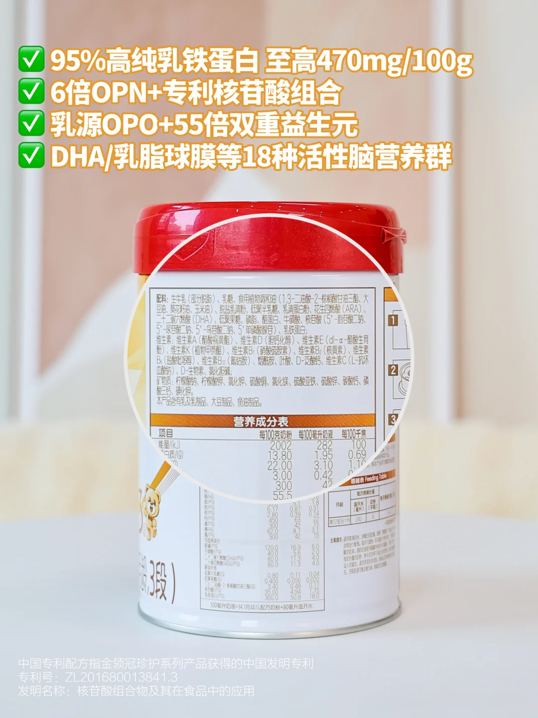 ✅金领冠珍护菁蕴有机奶粉含有超高含量的乳铁蛋白,至高达470mg/100g,堪称行业标杆。并且有6倍活性蛋白OPN,与乳铁蛋白形成1:10科学配比,构建双重防御系统